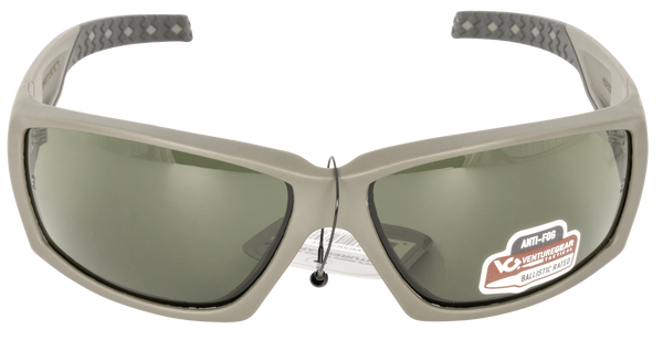 Pyramex's venture gear tactical overwatch glasses is a sunglass style with a metal hinge.It features a soft nosepiece, rubber timple tips, and an anti-fog, scratch resistant polycarbonate lens.Temple Sleeves: RubberFrame Color: OD GreenLens Coating: Anti-FogFrame Type: WraparoundUv Rating: 99%Nose Piece: RubberLens Type: PolycarbonateLens Color: GrayView more