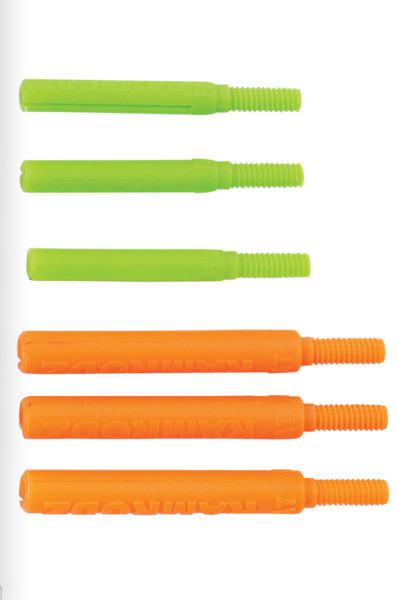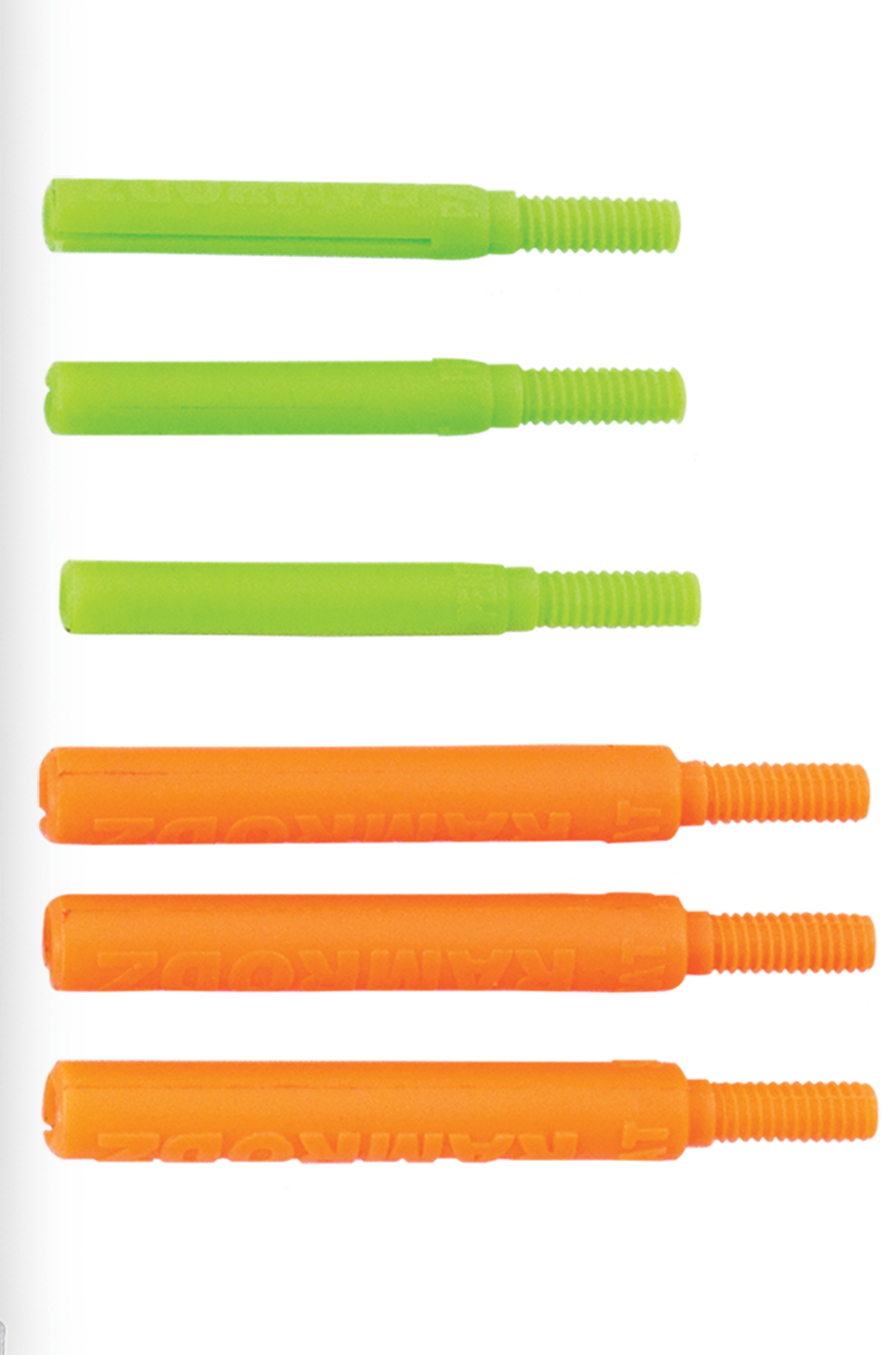 The ramrodz rifle & shotgun adapters provide a simple and efficient way to utilize caliber-specific ramrodz for cleaning rifle and shotgun barrels.Constructed of durable, reinforced nylon, ramrodz adapters fit standard cleaning-rod threads 8/32".Shooters can simply press a swab into the adapter, clean from breech to muzzle, then remove the dirty swab from the adapter after exiting the barrel.Each adapter features high-vis colors for easy identification: green for pistol or rifle calibers and orange for shotgun gauge calibers.