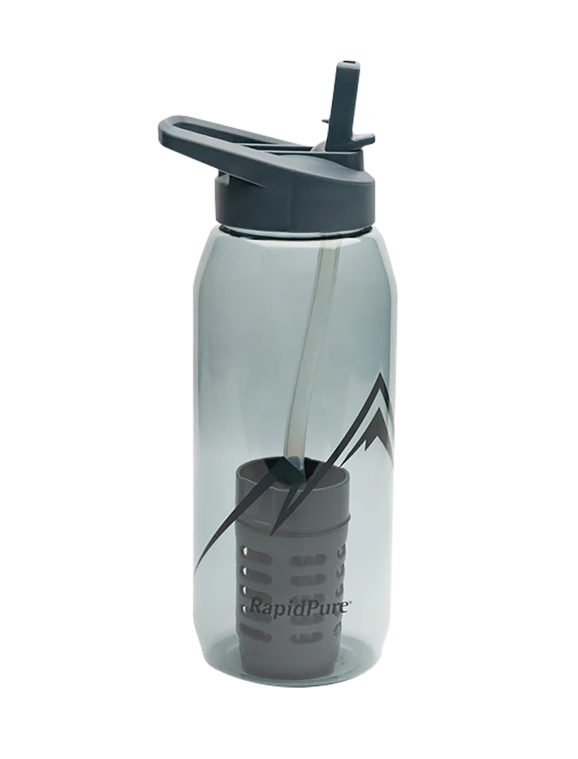 The rapidpure purifier+ bottle allows for fast, effective water purification as you drink - no pressing, squeezing, priming, or backflushing required.The proprietary triton bottle features rapidpure's new pod platform using ultraceram and openpore technology for 99.99% protection against viruses, bacteria, parasites, and more.The activated carbon filter removes odors and improves taste.It includes a flip-top lid, triton plastic bottle, ultralight straw, and replaceable filter cartridge and...View more