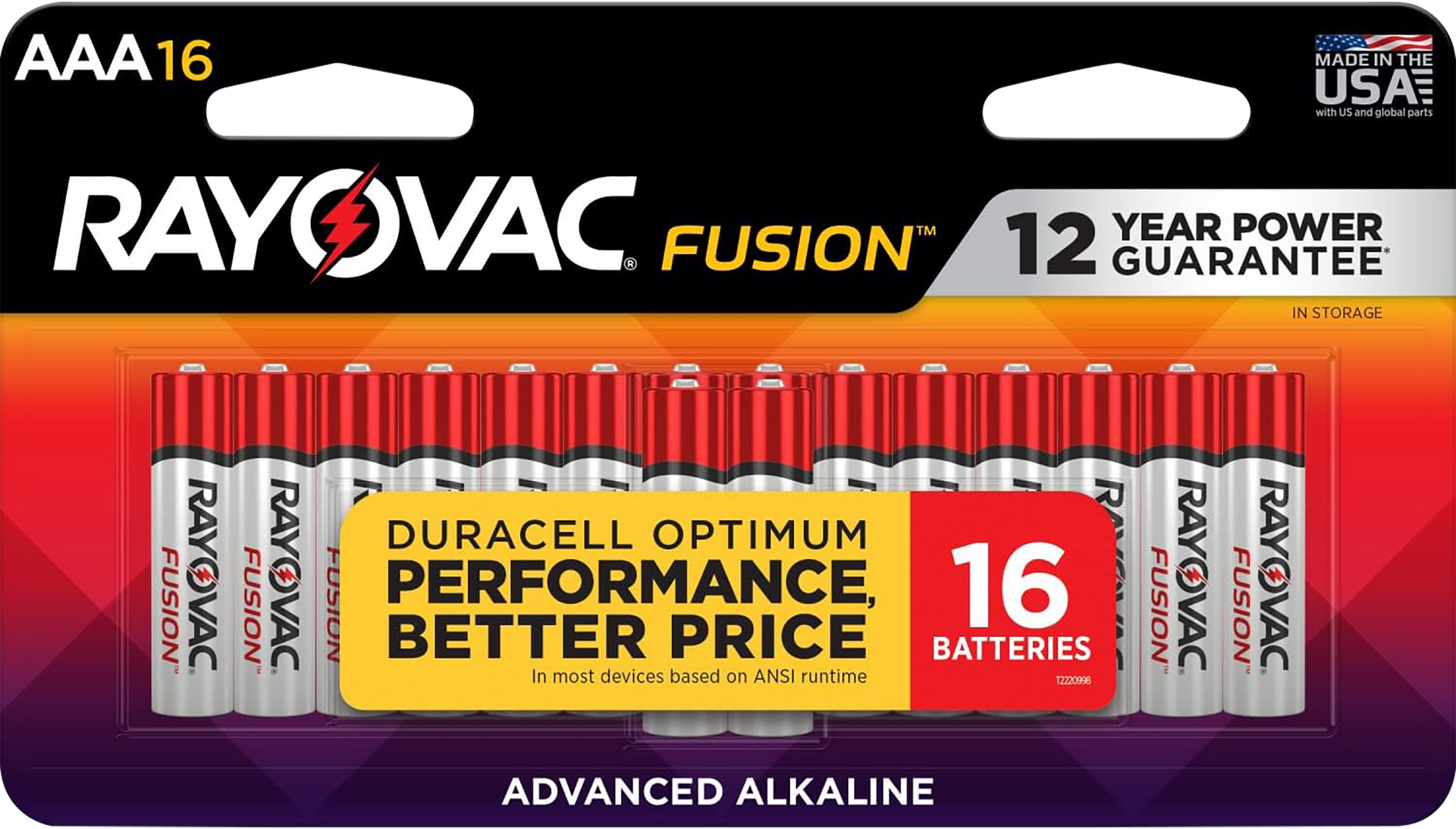 Rayovac high energy aaa batteries deliver long lasting, reliable power in devices you use every day.Customers look for rayovac alkaline batteries because they give them more power for their money everyday.Rayovac traditional carded packs come in small packages great to capture impulse purchases as well as to provide power but take up little space.Ideal for the high use devices in your home including flashlights, wireless mice, remotes, and more.Holds power for 10 years in storage.