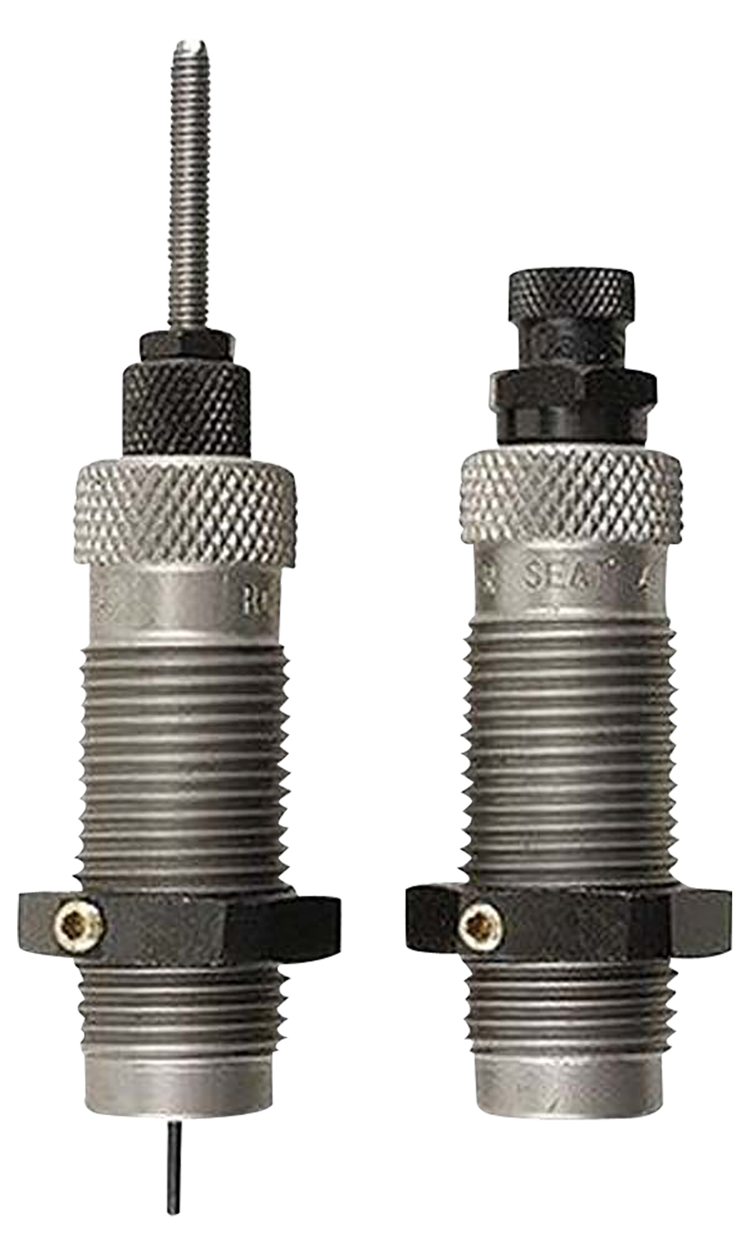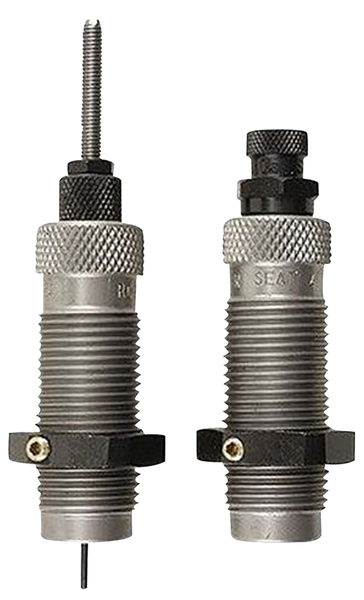 This two-die set is intended for reloading bottleneck cases, and consists of a full-length sizer die with an expander-decapping unit, and a seater die with bullet seater plug.The full-length sizer die brings the case to saami minimum cartridge dimensions.It sizes the outside of the case, de-primes and expands the neck to accept the bullet.The die has vents to prevent case damage caused by trapped air and for excessive lubricant.Headspace is held to minimum tolerances to avoid changing the case body length during full length sizing.The included seater die has a built-in roll crimper to secure the bullet at the same time as it's seated.