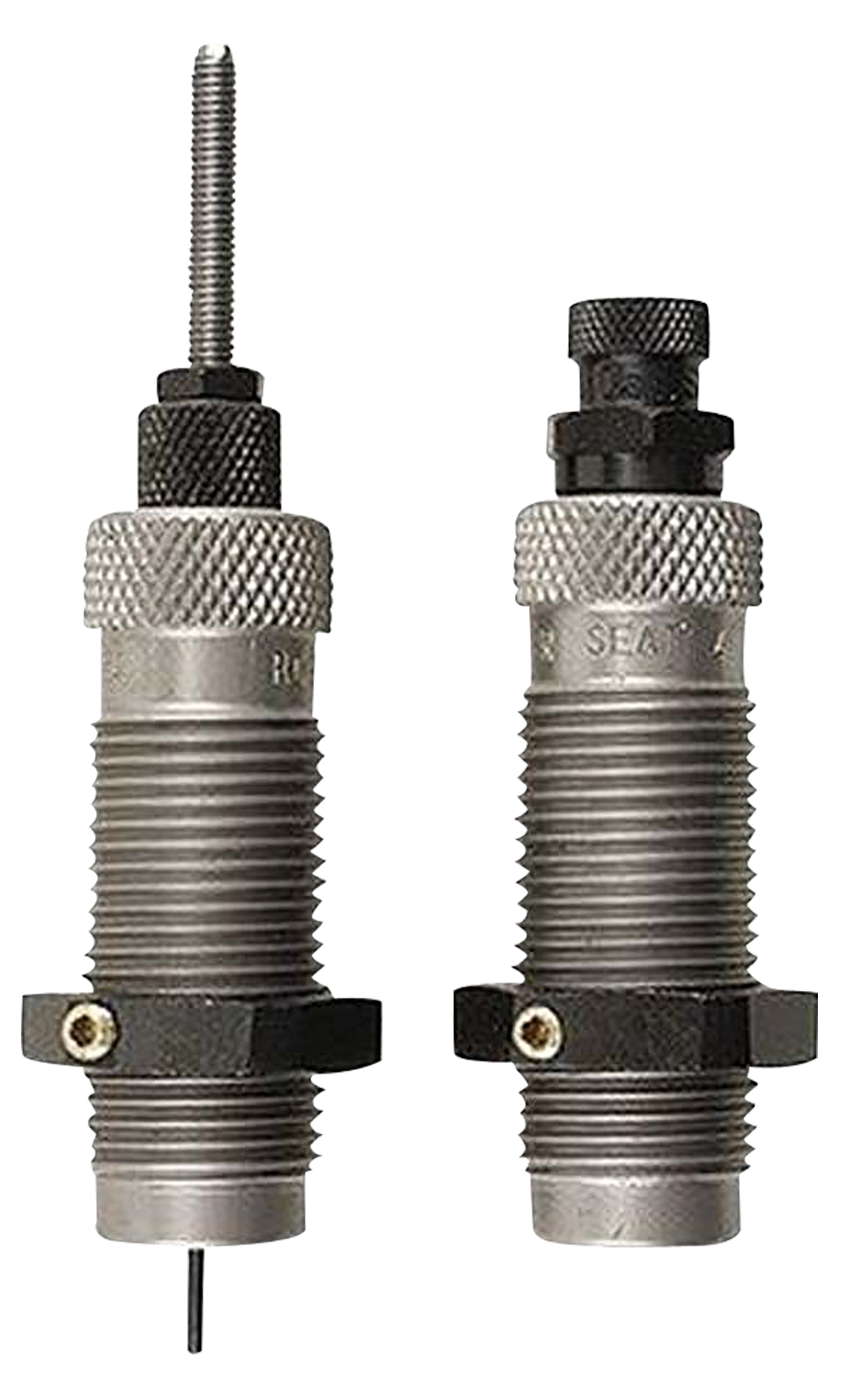 This two-die set is intended for reloading bottleneck cases, and consists of a full-length sizer die with an expander-decapping unit, and a seater die with bullet seater plug.The full-length sizer die brings the case to saami minimum cartridge dimensions.It sizes the outside of the case, de-primes and expands the neck to accept the bullet.The die has vents to prevent case damage caused by trapped air...View more