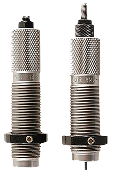 This two-die set is intended for reloading bottleneck cases, and consists of a full-length sizer die with an expander-decapping unit, and a seater die with bullet seater plug.The full-length sizer die brings the case to saami minimum cartridge dimensions.It sizes the outside of the case, de-primes and expands the neck to accept the bullet.The die has vents to prevent case damage caused by trapped air and for excessive lubricant.Headspace is held to minimum tolerances to avoid changing the case body length during full length sizing.The included seater die has a built-in roll crimper to secure the bullet at the same time as it's seated.