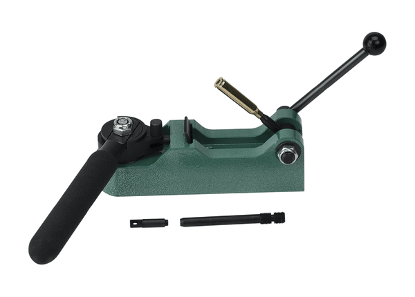 This dedicated bench mounted primer pocket swager tool makes removal of primer pocket staking/crimp a simple task.It has become especially important due to the popularity of ar -platform rifles, which has resulted in much commercial ammunition having staked primer pockets.The rugged die-cast aluminum base, hardened steel cam and foam padded grip handle require 35% less force than other tools to complete the job.
