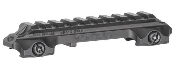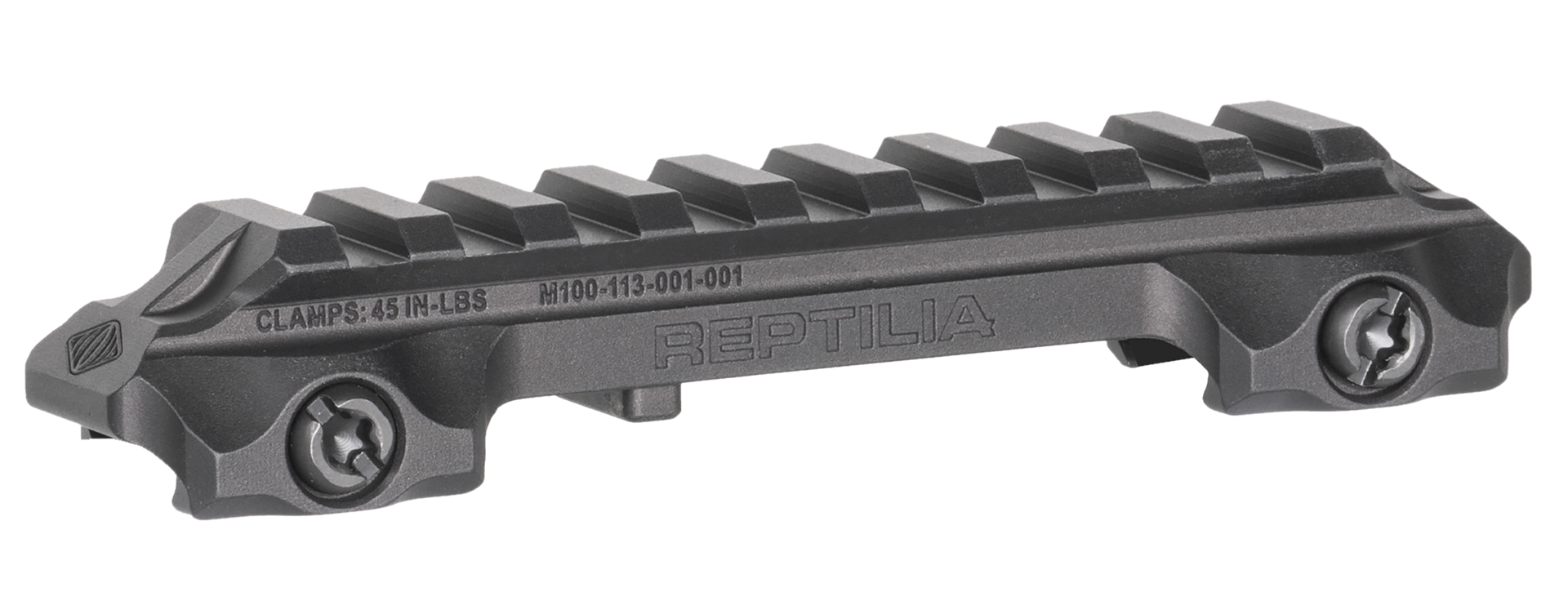 The rmu mount by reptilia is a lightweight, slim-line solution manufactured at the request of a dod customer.The rmu mounts are ideal for lifting a variety of optics with fixed height, lower 1/3 co-witness heights such as the eotech line of holographic optics, vortex optics amg uh-1, and sig optics romeo8t to an elevated height which is more ergonomic when using helmet-borne night vision or those who prefer a more upright shooting stance.The rmu mount is machined from billet 7075-t6 aluminum with milspec type iii hard anodized finish, the rmu mount attaches to any m1913 picatinny rail, and offers optimal sight placement with an increase in height of.625 inches.Its spring-loaded nitride steel clamp and mounting bolt simplify the installation process, and sit flush with the body of the mount for a low-profile, anti-snag design.