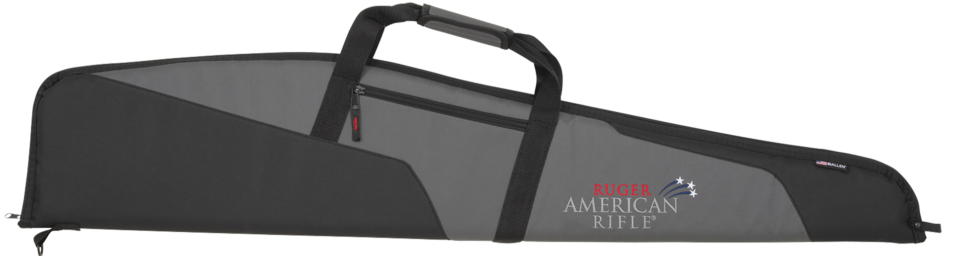 Ruger american rifle case by allen fits guns up to 46".With thick foam padding and made of rugged endura fabric, this case is durable and classic.Features an accessory pocket and a padded handle grip.Made in the usa .
