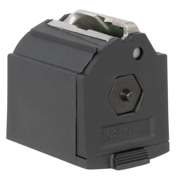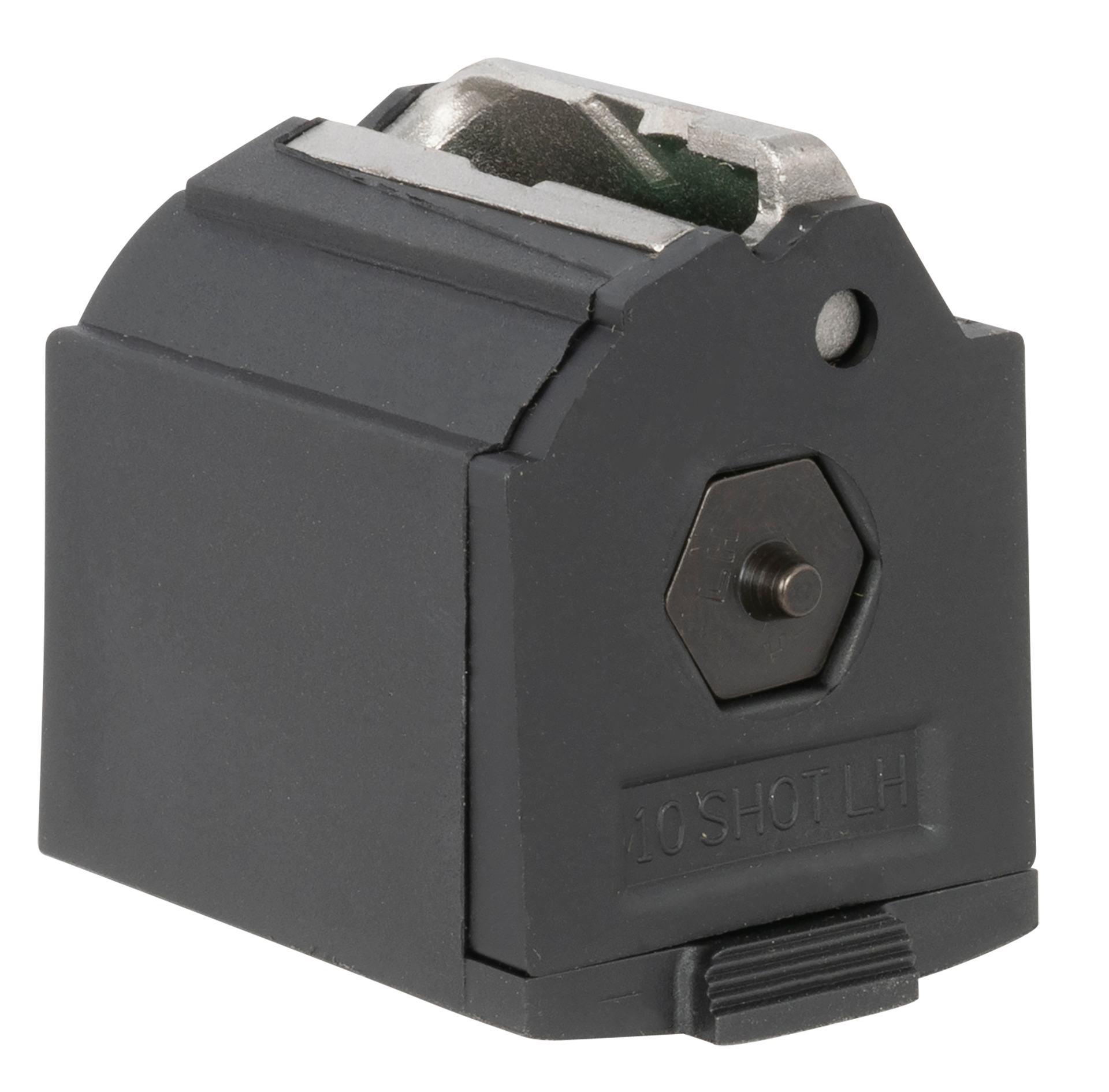 The blx-1 left-hand magazine is made of black plastic with steel feed.It works with any factory original 10/22 rifle with left-hand feed and ejection only.