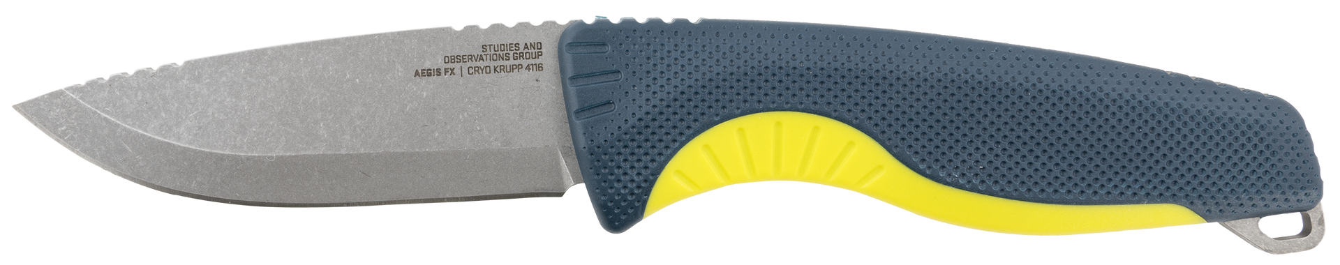 Aegis fx is an intrepid and reliable knife meant to play an integral role in any outdoor adventure.Its full-tang cryo 4116 krupp stainless steel blade is corrosion resistant and persistently holds its edge.Its adaptable universal mounting system compatible sheath allows for multiple carrying options.Features a grn handle with an overmolded rubberized grip area for increased comfort even with multiple different hand grips.Blade Type: Drop PointBlade...View more