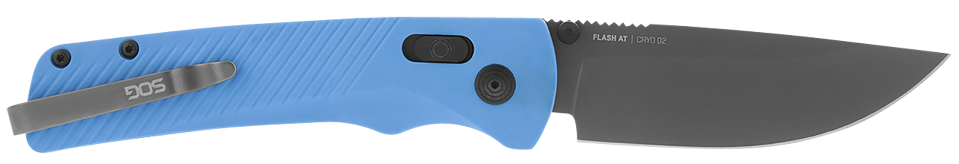 A folding knife designed for everyday users, the flash at assisted opening knife features rapid assisted opening with sog's innovative ambidextrous at-xr lock and streamlined ergonomic handle design for enhanced grip and comfort.Flash at is compact and easy to carry, with a highly functional 3.5" cryogenically heat-treated d2 stainless steel blade.Its powerful xr locking mechanism also features reliable built-in blade locking safety and spine-mounted safety...View more
