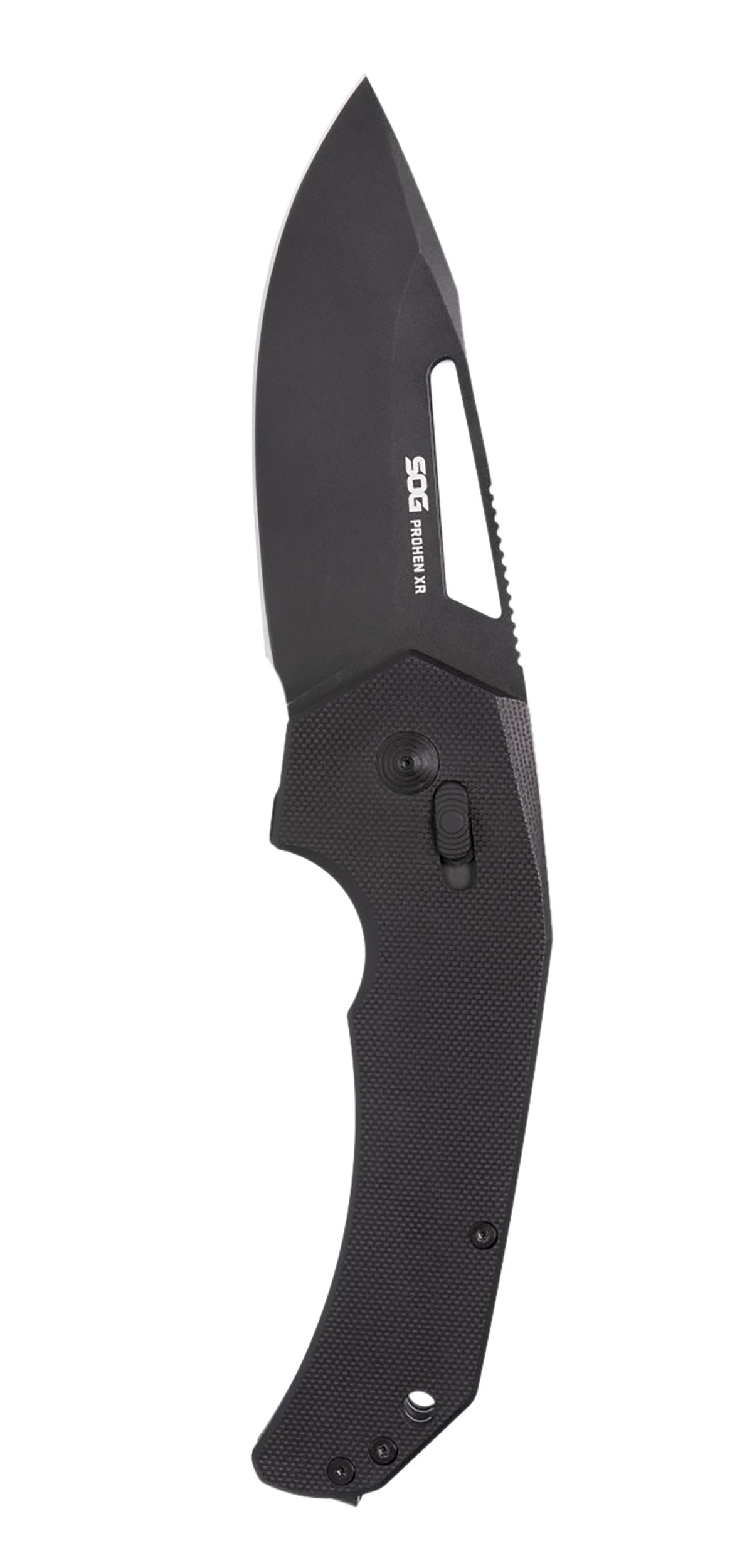 The 3.40" blade of theprohen xr folding knife is forged from durable, ultra-sharp 4mm-thick cryo d2 steel and attached to a one-of-a-kind g10 handle ideated by legend and all-around visionary in the world of knife design, mikkel willumsen.Textured, this ergonomic handle stands up to the most demanding situations you find yourself in.The timeless drop point blade offers control when performing intricate tasks.Equipped with our renowned xr lock sliding transverse bar that allows swift, single-handed access with either hand and securely locks the blade in place.Opens with a simple flick of the thumb hole or engaging the xr lock with a satisfying, snap.