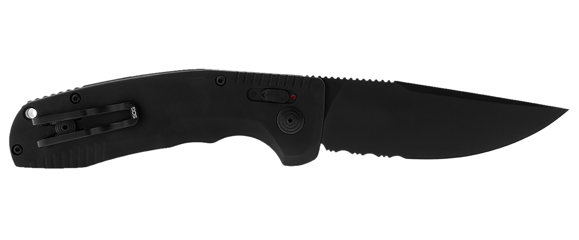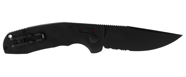 With a textured aluminum handle and cryo d2 blade, sog-tac au is a fast-opening folding knife that springs to action with either hand and stays open with exceptional lock-up strength thanks to sog's advanced au-xr lock.An american-made switchblade, it's a muscular go-to and back-up tool for military, first responders and defensive carry users who will appreciate the reliable double-action safety.Includes pocket clip.