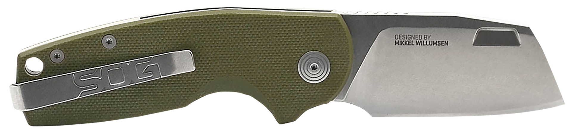 Stout sj is a collaborative effort between danish knife designer mikkel willumsen and sog founder spencer frazer.Featuring a clip point stonewashed cryo d2 steel blade, stainless steel frame and rugged g10 handle.This everyday carry all-star is designed to be safe and offers an effortless and smooth opening and closing action, with a strong and confident open position.Closed Length: 3.80"Blade Type: CleaverBlade Length: 2.40"Oal: 6.40"Blade Material:...View more