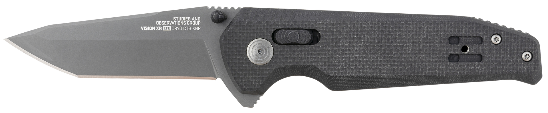 Carbon fiber liners reduce the weight of the vision xr lte by 30% when compared to the standard vision xr.Sog vision xr lte features a 3.18 inch cryogenically heat-treated cts xhp stainless steel tanto blade for increased strength and general purpose use, and ultra-grip g10 handle.Sogs xr lock enables smooth ambidextrous single-handed opening in three different ways with innovative solid blade-lock once open delivering fixed-blade-like feel and confidence.The essential folding knife for professionals, the sog vision xr pocket knife is at the peak of performance and capability.
