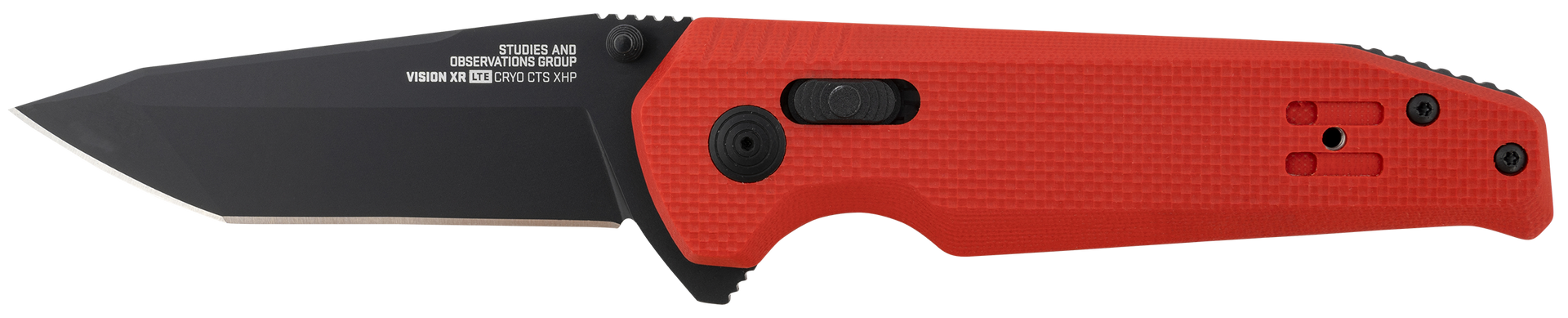 Carbon fiber liners reduce the weight of the vision xr lte by 30% when compared to the standard vision xr.Sog vision xr lte features a 3.18 inch cryogenically heat-treated cts xhp stainless steel tanto blade for increased strength and general purpose use, and ultra-grip g10 handle.Sogs xr lock enables smooth ambidextrous single-handed opening in three different ways with innovative solid blade-lock once open delivering fixed-blade-like feel and confidence.The essential folding knife for professionals, the sog vision xr pocket knife is at the peak of performance and capability.