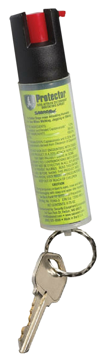 Sabre protector is a safe, yet effective, solution to help deter dog attacks while enjoying the outdoors.It has 1% of major capsaicinoids - the maximum strength allowed by the epa.Protector is strong enough to deter attacks, from dogs of all sizes, without causing long-lasting injury or pain to the attacking dog.These are the two qualities consumers want most.The small canister includes a key ring attachment...View more