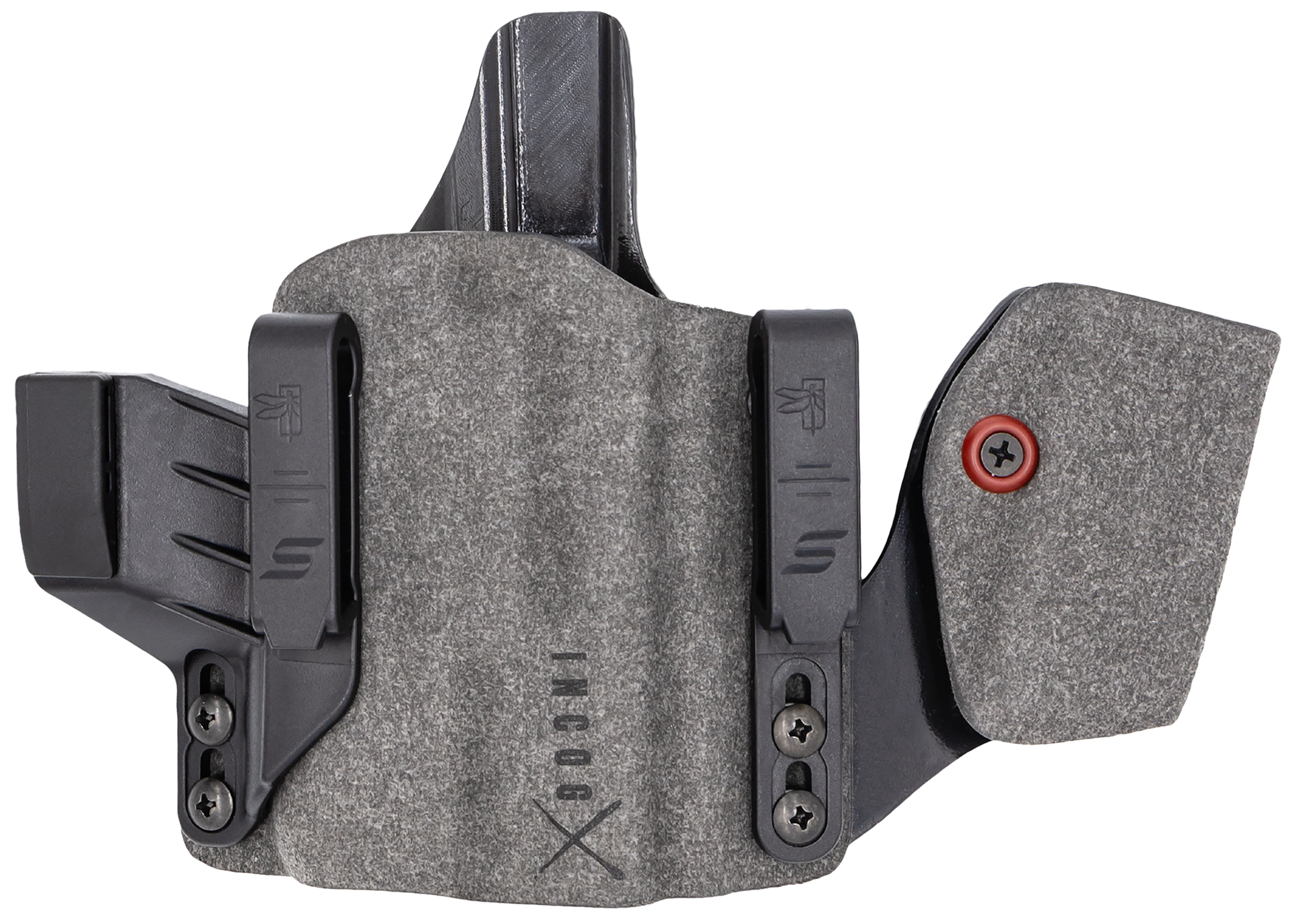 The incog x is an ergonomic, mission adaptable, rds compatible, multi-positional, deep concealment iwb hybrid thermofolded holster.The design features passive retention and adjustable tension functionality, allowing a fine-tuned holstered firearm fit and draw feel.His evolution of the incogx features a series of clips that allow more adaptability to the end user while providing the original design intentions of enhanced grip acquisition, concealment, and functionality.All incogx models include clip strut shims in three different concealment enhancement sizes, 1/8, 1/4", and 3/8.