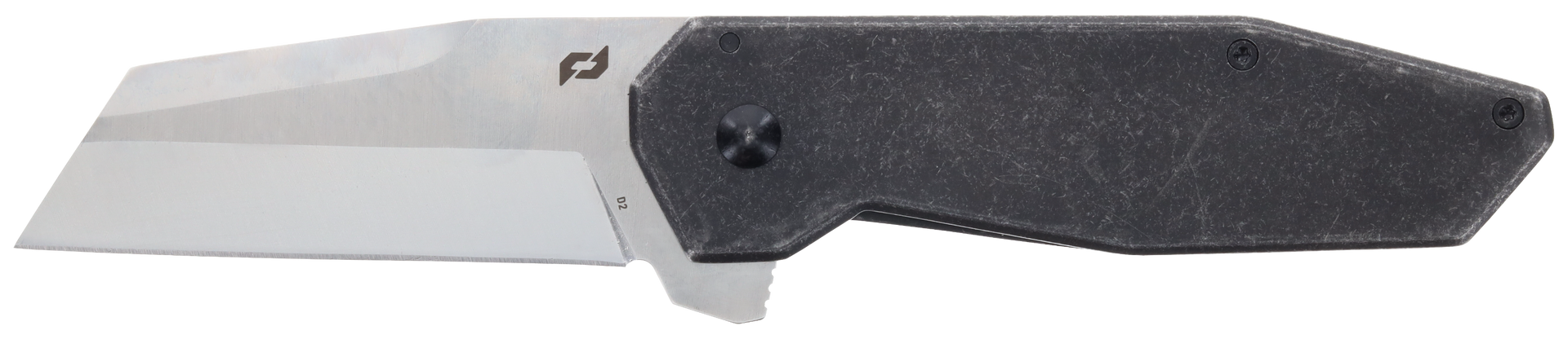 Schrade slyte with a 3" satin blade and a dark stone handle.