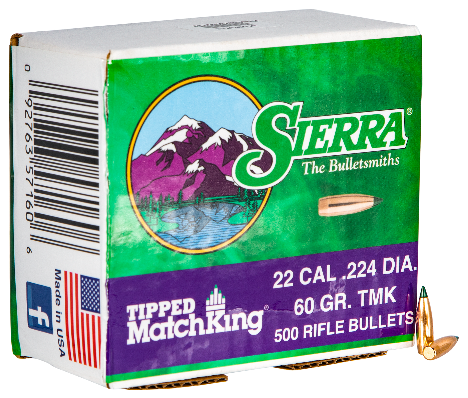 Sierra has enhanced a segment of the matchking line by adding the acetal resin tip, thus crowning the tipped matchking bullet line.The major advantage of adding a tip to the bullet is the reduction of drag, producing a more favorable ballistic coefficient.