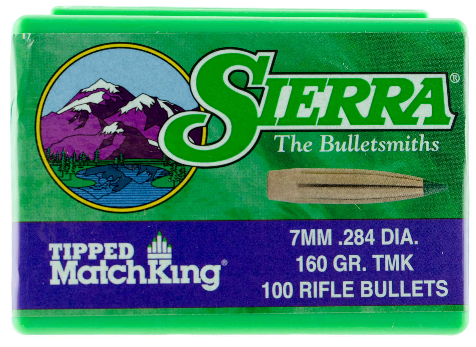 Sierra has enhanced a segment of the matchking line by adding the acetal resin tip, thus crowning the tipped matchking bullet line.The major advantage of adding a tip to the bullet is the reduction of drag, producing a more favorable ballistic coefficient.Bullet Type: Tipped MatchKingBullet Diameter: .284Weight: 160 grBullet Caliber: 7mmJacket Material: CopperBullet Tip Material: PlasticCore Material: LeadSectional Density: .283Quantity: 100 Per BoxView more