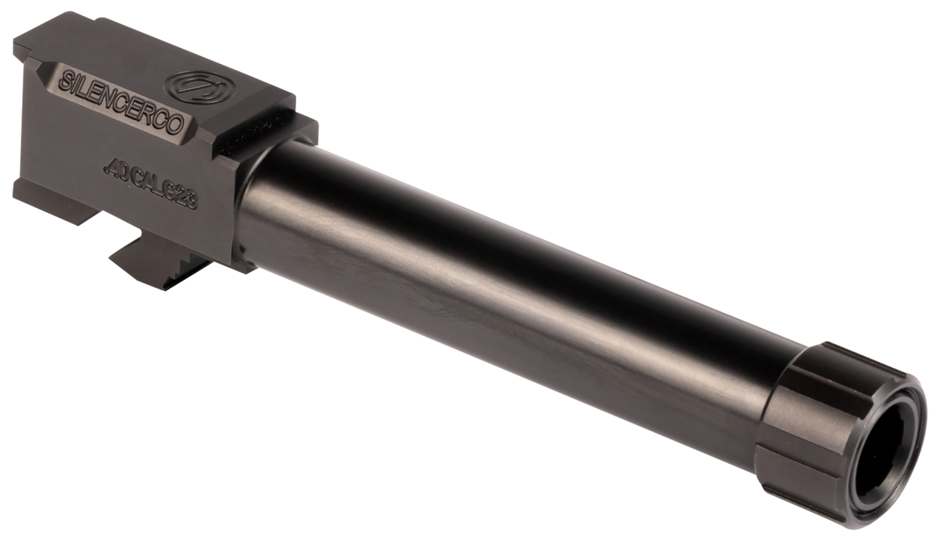 All pistol suppressors require a threaded pistol barrel.Silencerco noticed a market need for high quality pistol barrels and we stepped in to offer them.Holding to the same commitment to quality as all of our products, the threaded barrels are tough enough to hold up under the harshest conditions.Made of 416r stainless steel and finished in black nitride.For use with a pistol silencer, you will also need a piston.Silencerco threaded barrels come with a thread protector.