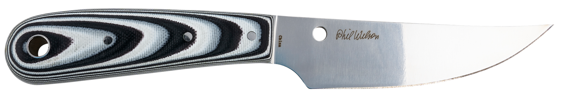 Spyderco's bow river is a compact, all-purpose design featuring a full-flat-ground, trailing-point blade crafted from 8cr13mov stainless steel.The blade is paired with a contoured, ergonomic handle made with layered black and gray g-10.Includes a leather sheath with belt loop.