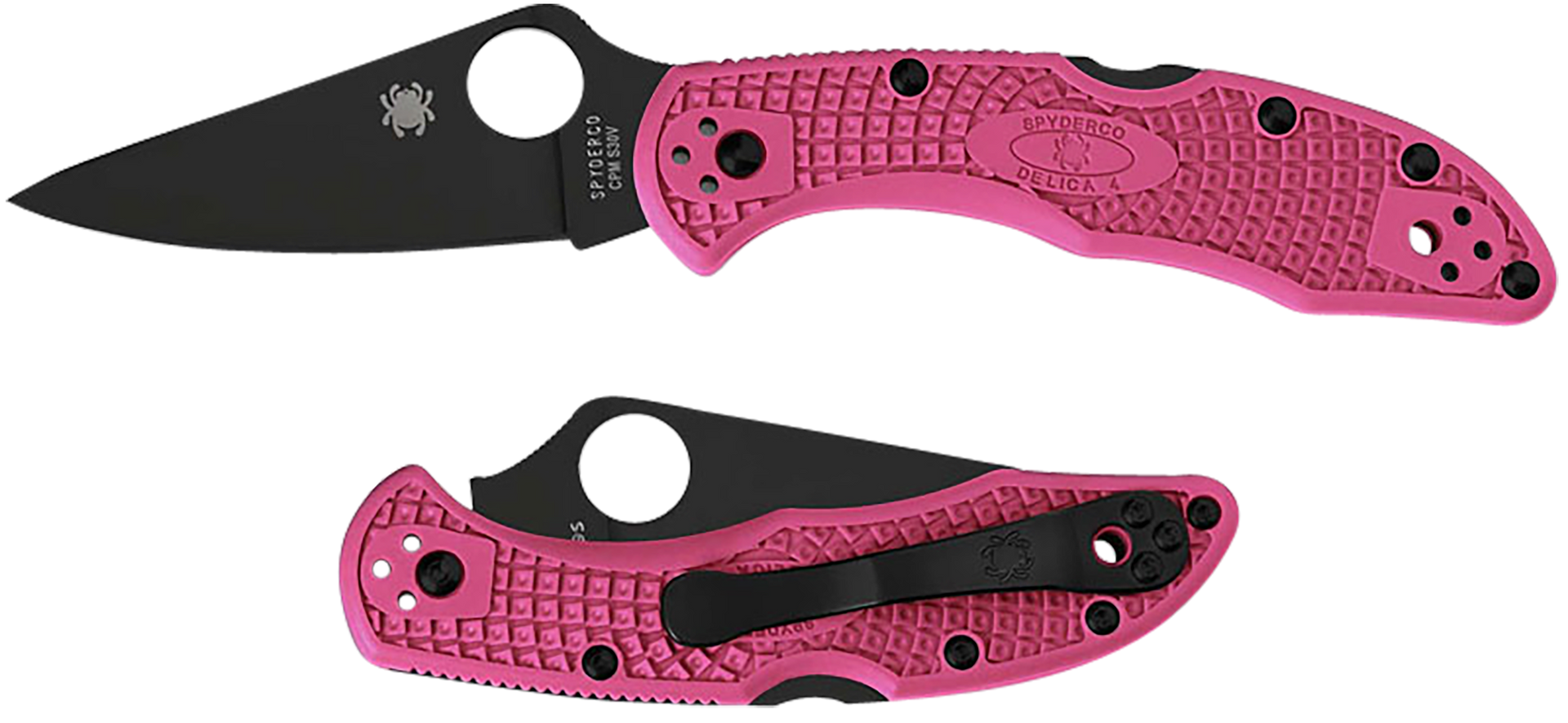 The variation of the delica 4 lightweight combines a titanium carbonitride (ticn) coated cpm s30v stainless steel blade with a bright pink fiberglass-reinforced-nylon handle.To complement the rich, black finish of the blade, its four-position pocket clip and all other handle hardware also sport matching black coatings.Spyderco is proud to support living beyond breast cancer, a national nonprofit organization that seeks to create a world that understands there is more than one way to have breast cancer.To fulfill its mission of providing trusted information and a community of support to those impacted by the disease, living beyond breast cancer offers in-person experiences and on-demand emotional, practical and evidence-based content.