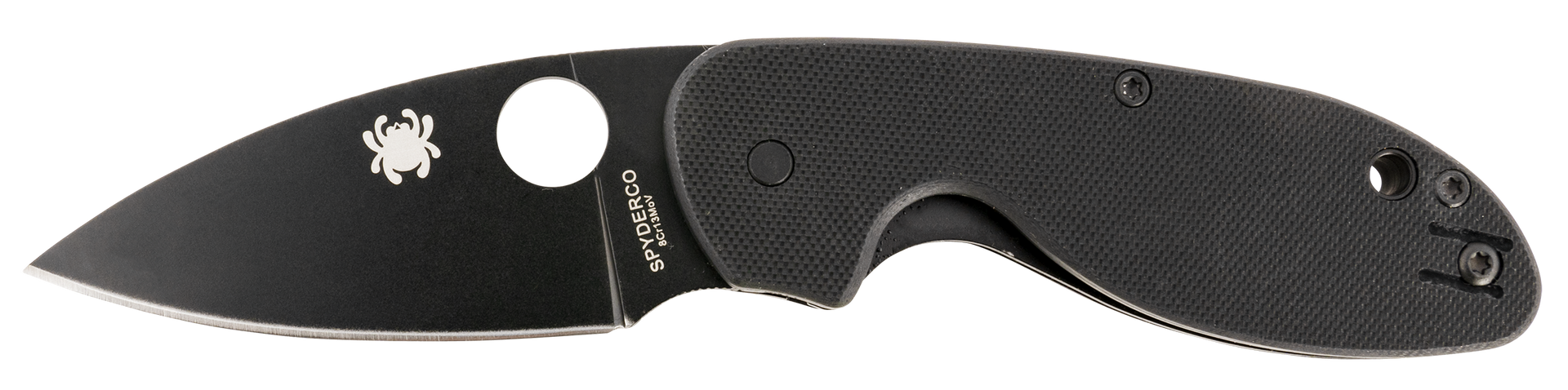 The spyderco efficient is a workhorse cutting tool better suited to the needs of tactically oriented end users.Featuring an all-black configuration with a non-reflective black oxide blade coating and matching black liners and handle hardware.Its 8cr13mov stainless steel blade is full-flat ground for superior edge geometry.An index-finger choil at the base of the blade allows a choked-up grip for enhanced control and spydercos trademark round hole provides swift, one-handed opening.The blade is paired with an ergonomic handle that includes full stainless steel liners, a sturdy linerlock mechanism, textured g-10 scales, a lined lanyard hole and a reversible deep-pocket wire clip that can be configured for left or right-side tip-up carry.