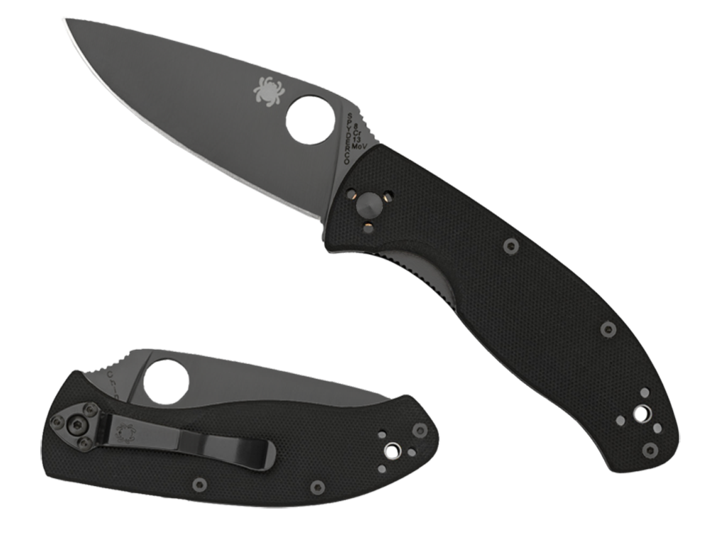 The mid-sized tenacious has a black g-10 laminate handle with skeletonized steel liners to increase the handle's rigidity and strength without adding non-functioning weight or bulky thickness.The 8cr13mov stainless blade is leaf-shaped and ground flat from spine to cutting edge for cutting performance.The blade's shape coupled with an oversized spyderco round hole and textured spine jimping allow you to open the blade and position your thumb on the spine in slip-proof confidence.A walker linerlock (with jimped liner) and a 4-way pocket clip lets you set your carry and draw preference: tip up or down for left-or right-handed use.Screw together construction.