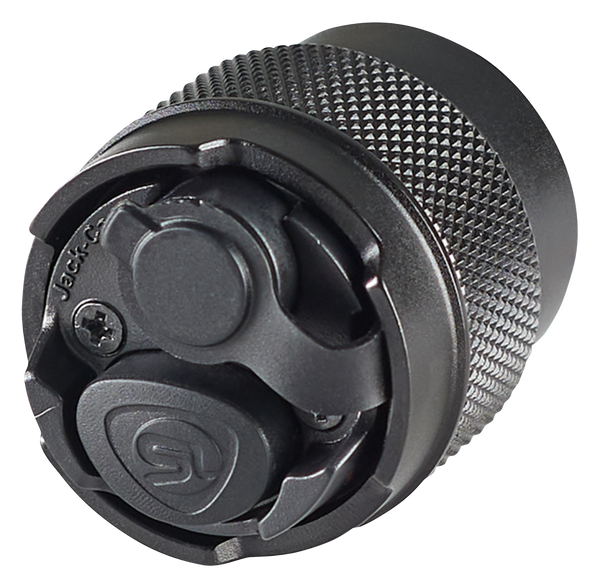 Streamlight's jack-cap tail cap switch offers operational switch redundancy with both push-button operation or remote pressure switch operation for protac rail mount hl-x pro flashlights.