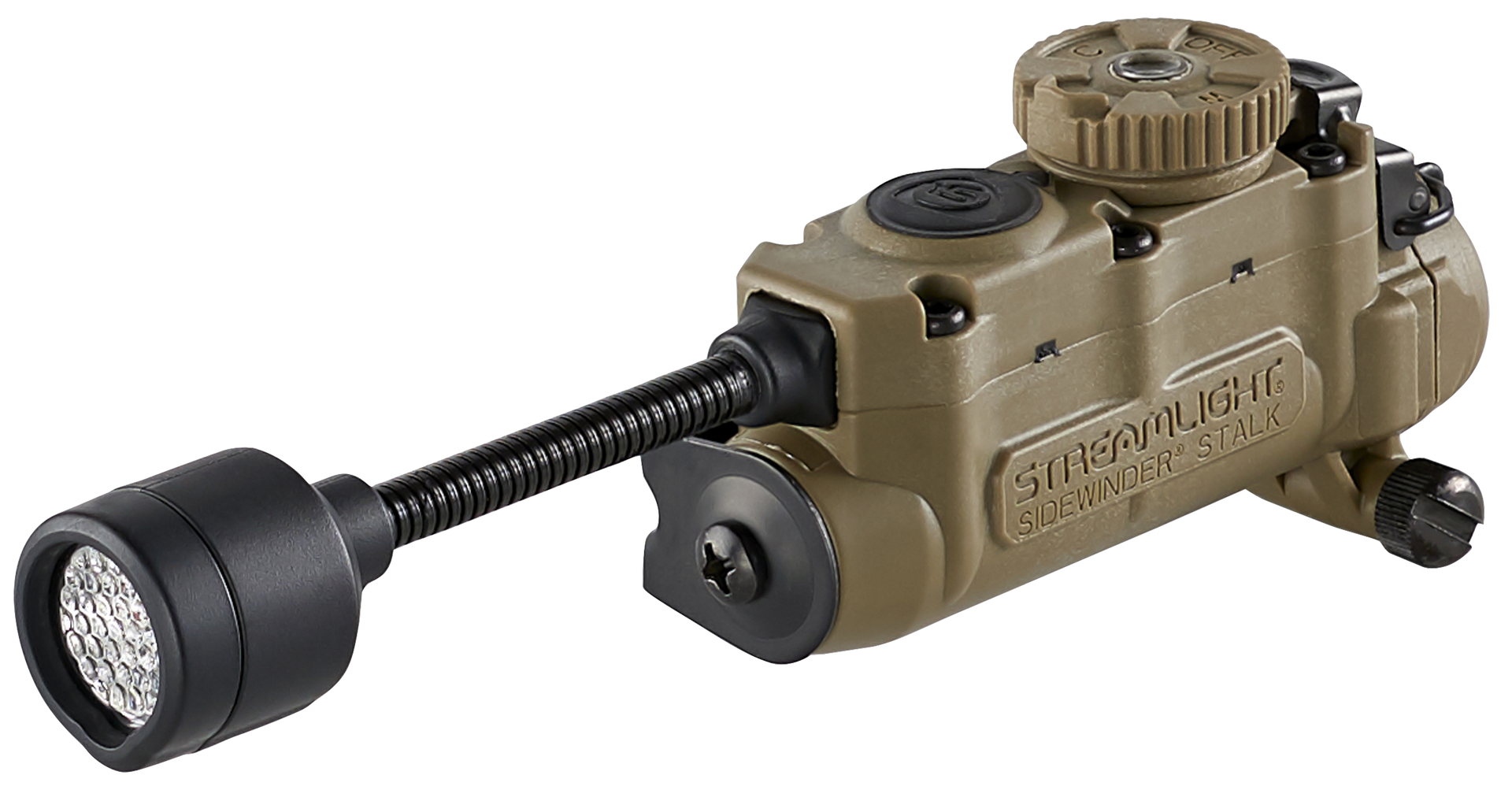 Designed to minimize the number of illuminators and beacons an operator must carry, the low-profile sidewinder stalk provides ultimate maneuverability.Put light where you need it with multiple mounting options and a flexible stalk to aim the beam.Multi-fuel capability allows it to accept more than one battery type.Features visible white, multi-colored and ir leds.A separate identification friend or foe (iff) switch lets you use both the main light and iff when needed.Durable clip attaches to helmet or molle vest providing flexibility in hands-free lighting.Includes arc rail & mount, helmet clip, one cr123 and one aa battery.