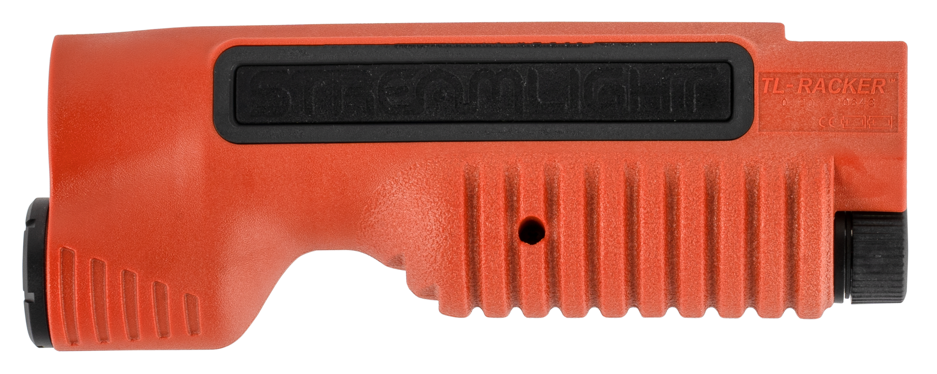 The tl-racker is an all-in-one integrated shotgun forend light with a sleek design that reduces snag hazards by eliminating the need for remote cords.Ideal for shotgun breaching, close-quarter operations, or elevating your home defense options.The elongated switch pad accommodates virtually any hand size.Its impact-resistant nylon outer body is virtually indestructible, while the light is made of aluminum with and anodized finish, o-ring and gasket sealed borofloat glass lens.Available in orange for less-than-lethal applications.