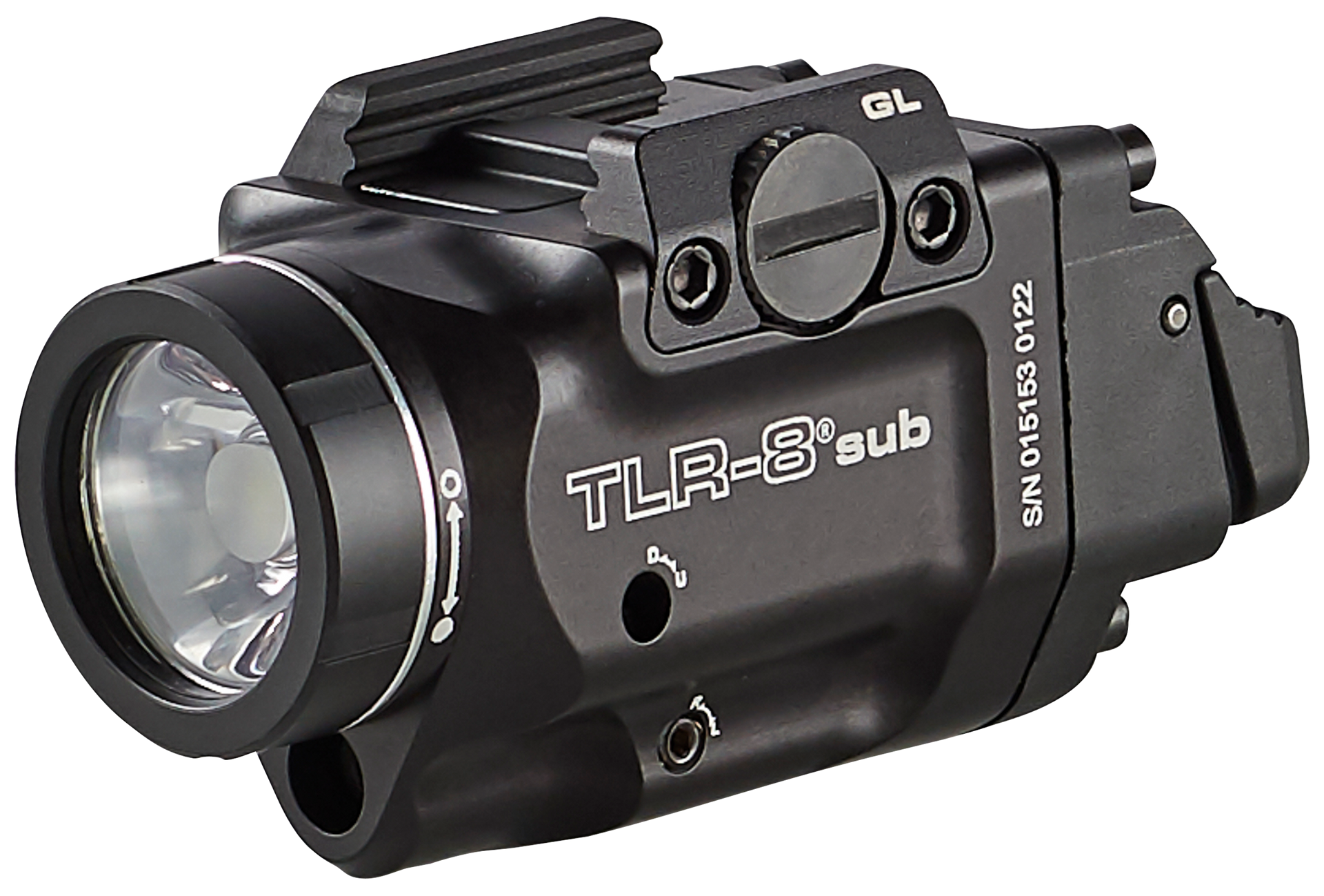 The streamlight tlr-8 sub produces a narrow beam with optimum peripheral illumination.Featuring next generation rear paddle switches with high and low options; white led and red aiming laser; safe-off feature prevents accidental activation, saving batteries and rail clamp system securely attaches/detaches quickly and safely with no tools and without putting your hands in front of muzzle.Includes mounting kit with key, cr123a lithium battery and interchangeable...View more