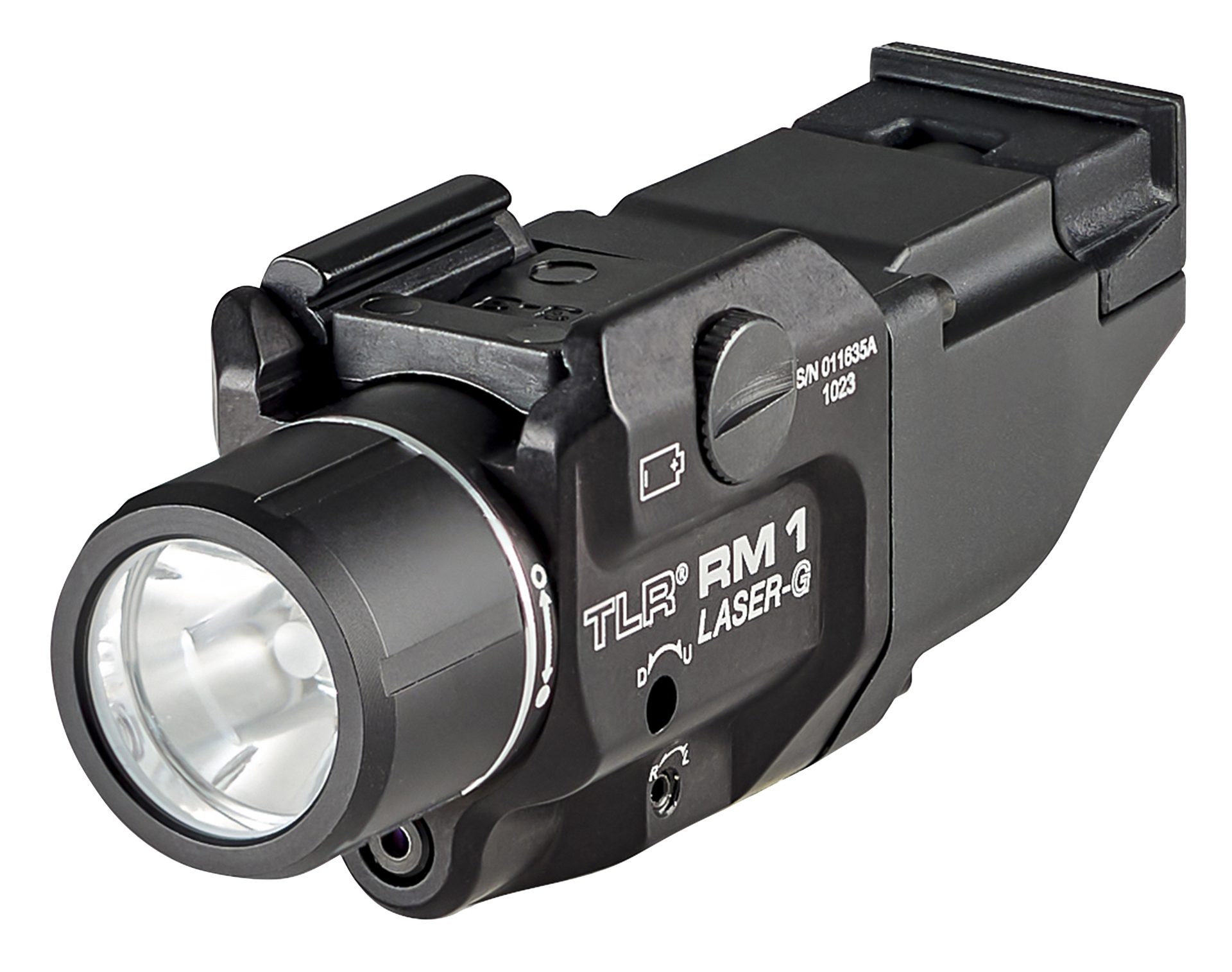 The low-profile tlr rm 1 laser-g features an hpl face cap for a longer reaching, tighter beam.Its designed to produce more candela while maintaining lumen output.Independently operating push-button and remote pressure switches provide the security of knowing you'll always have light.Featuring led for extreme brightness, ambidextrous operation, one handed snap-on and tighten interface keeps hands away from muzzle when attaching or detaching, fits a broad range of weapons using key kit provided and mode selector toggle switch for laser/light/light & laser combo.Packaged as a kit offering everything you need to mount to your long gun.Includes rail locating keys, mounting clips and cr123a battery.