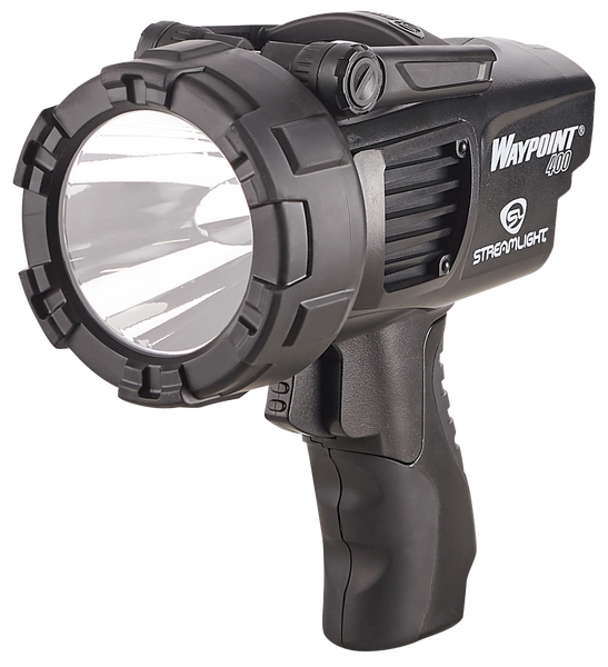 The waypoint 400 rechargeable spotlight has a broader, wider beam than the alkaline waypoint.It spreads bright light across a whole room,campsite or backyard illuminating everything, yet its beam still reaches an impressive 1,265 meters.The high impact polycarbonate housing features an unbreakable polycarbonate lens, rubberized lens ring, is o-ring sealed, integrated stand and has a cushioned-grip handle.Includes 120v ac charger.