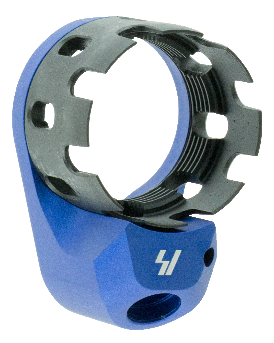 The enhanced castle nut and extended end plate combo stands out from the generic parts kit units in both aesthetics and function.The steel castle nut has been lengthened to match the extended end plate, supporting more of the receiver extension s threaded area, and improving aesthetics.The extended end plate features a quick detach sling swivel mount, pushed back away from the webbing of the primary hand.This allows weapons manipulations in tight spaces and under stress, without the startling pain that can result from a pinched hand when using a sling attached to a standard, flat qd end plate.
