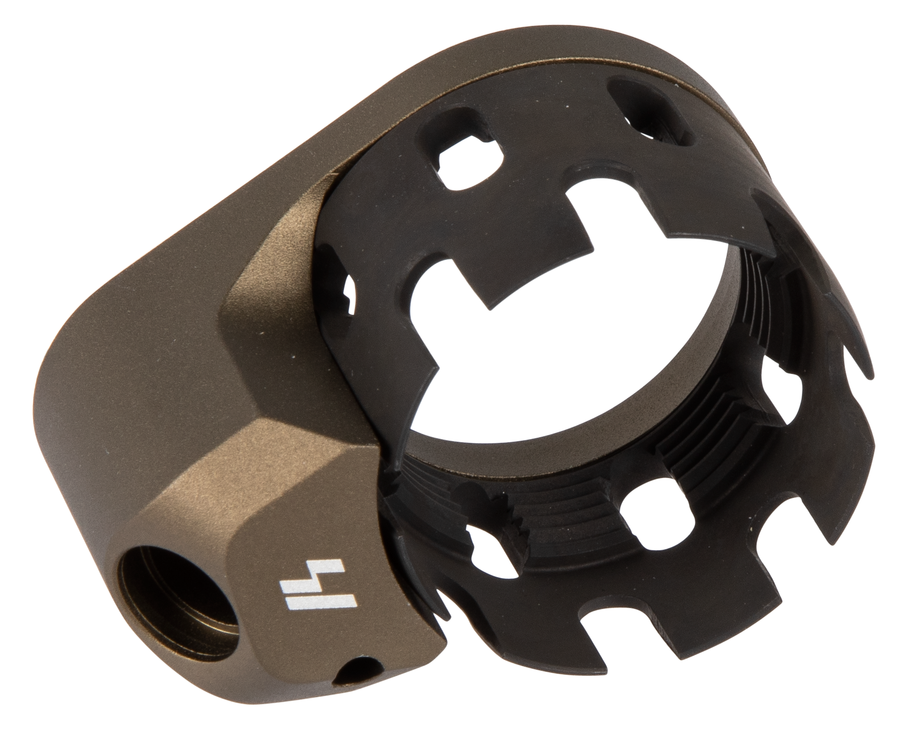 The enhanced castle nut and extended end plate combo stands out from the generic parts kit units in both aesthetics and function.The steel castle nut has been lengthened to match the extended end plate, supporting more of the receiver extension threaded area, and improving aesthetics.The extended end plate features a quick detach sling swivel mount, pushed back away from the webbing of the primary hand.This...View more