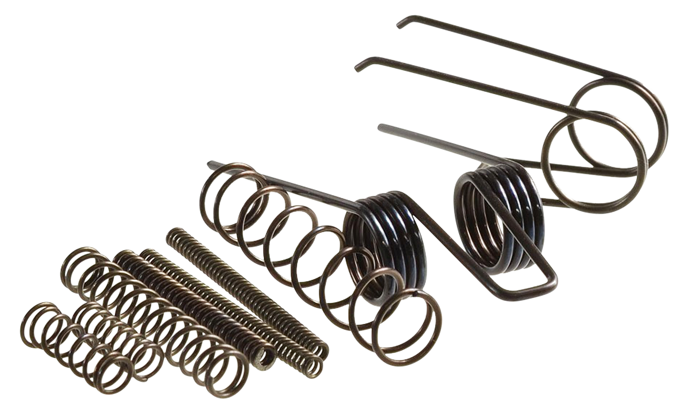The strike industries m?4ar-15 lower receiver spring replacement kit includes 9 important springs that are commonly replaced or easily lost when building stripped lower receivers.The 9-piece kit includes springs for the bolt catch, disconnector spring, buffer retainer spring, trigger spring, hammer spring, magazine catch spring, selector spring and two detent springs.