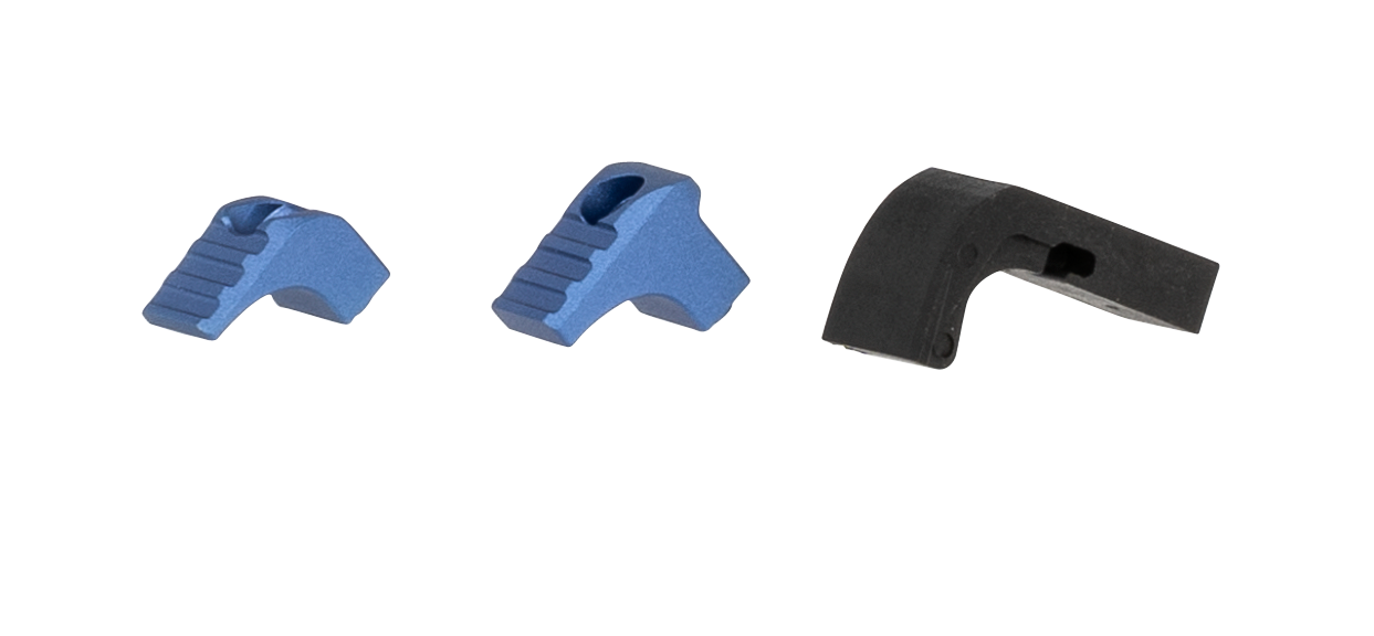 The strike industries mag release for the gen 4-5 glock is a new modular upgrade for the glock gen 4 & 5.Included are two push buttons that are easily interchangeable.Both button faces are cnc milled from 6061 aluminum, with mag release internal mechanism made from high density polymer that provides smooth ejection.*note- not compatible with 36/42/43.