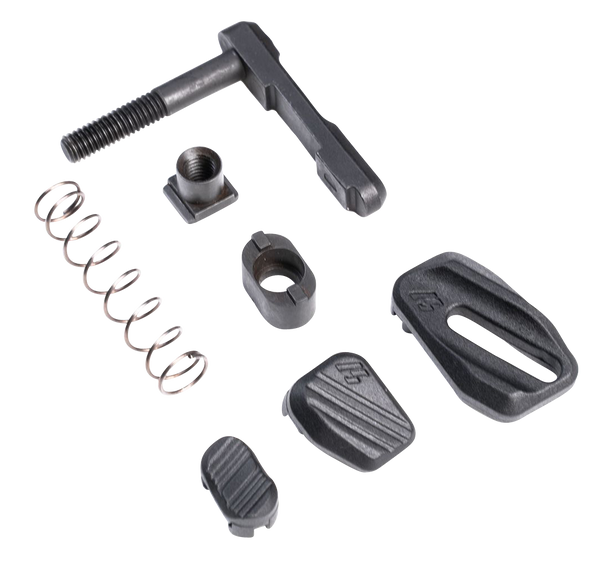 The strike industries ar modular magazine release (mmr) offers a quick and simple way to configure your mag button preference to one of three (3) included options.No need to remove the mag catch if you want to change the button.A simple push of the magazine button adapter using an object that fits in the space allows for a quick and simple swap of the magazine button.The si mmr comes with included standard, extended and oversized buttons so you always have the modularity to swap at home or at the range.The mag buttons are textured for positive feel and manipulation of your ar for enhanced ergonomic control.The provided mag buttons are made from lightweight polymer paired with sus630 stainless steel shaft sleeve and mag button adapter.Included as well is a steel magazine catch along with a magazine spring to give you everything out of the package for a drop-in installation.
