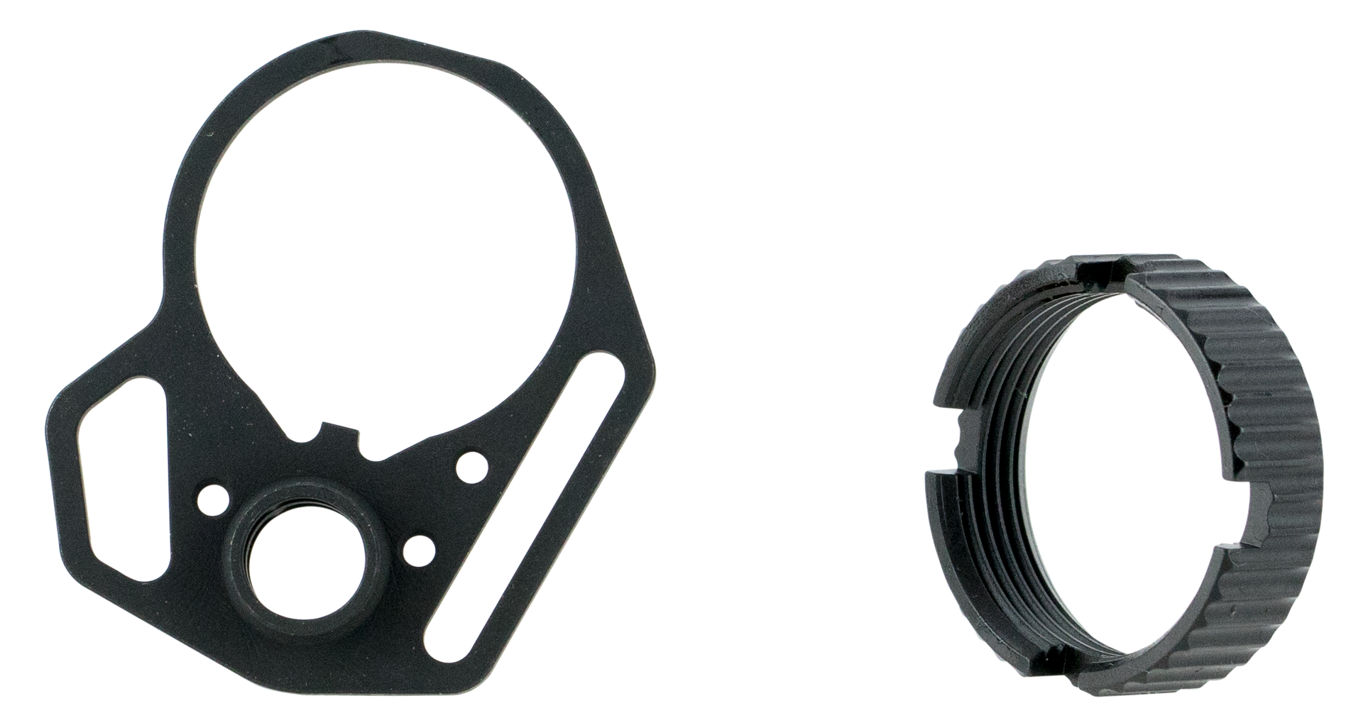 The si multi-function end plate and anti-rotation castle nut has an anti-rotate qd socket or sling loops built in.It also is reversible, has three integral sling mounting options, a traditional sling loop, and a loop for hook style attachments.