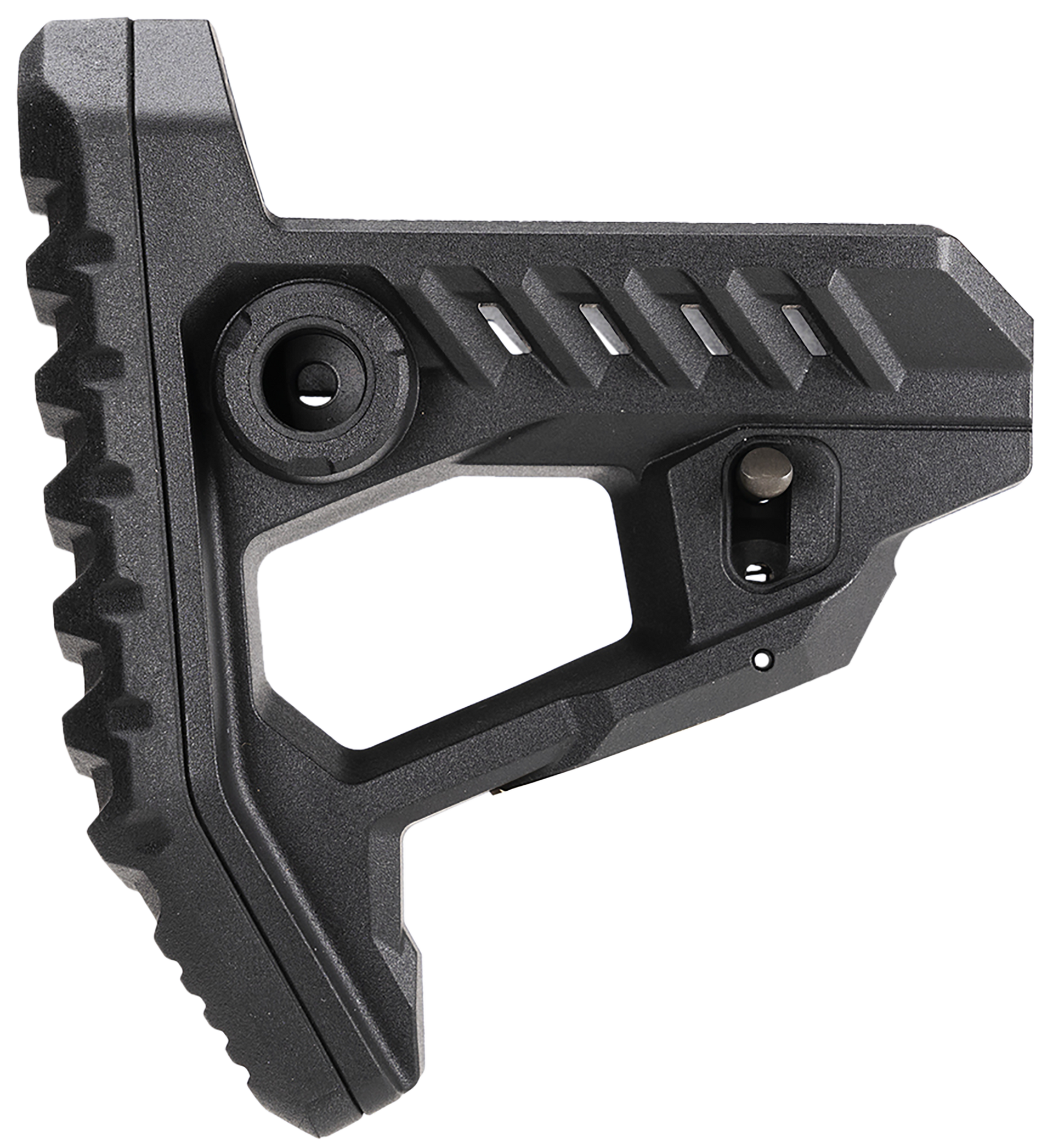 The strike polymer pit stock is the evolution of the original aluminum pit stock, designed for those seeking a version that is equally high-strength but lighter in weight.Made from a custom blended si polymer extreme material.With its 4-position adjustability, the stock can be easily adjusted to fit any shooter's preference.The rubber anti-slip buttpad ensures a comfortable and secure shoulder hold, while the ambidextrous qd sling mounting points provide flexibility for carrying options.