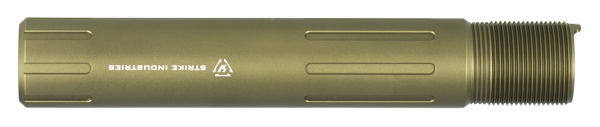 Strike industries' carbine length pistol receiver extension is designed to be a serious piece of hardware.Machined from 7075-t6 aluminum construction, the carpre offers much greater strength than your standard 6061 tubes.The pistol receiver extension features a supported, anti-rotation buffer retaining plunger and a convenient sling swivel is machined into the back to facilitate "push-pull" operation.This slick version features an all-around smooth profile.