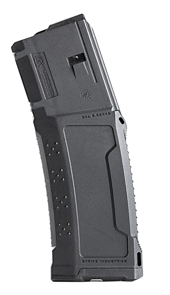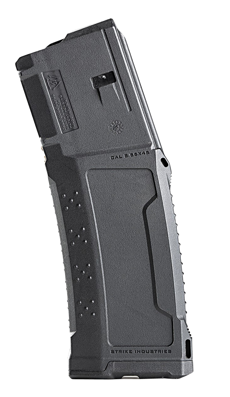 The strike ar-15 magazine is a high-strength polymer.223 remington/5.56 nato ar-15/m4/m16 compatible magazine.With the "accuramp" first round feed tray design feature, keep your eyes on the target knowing that your reloads are ready to go.To ensure the last little bit of reliability, there is an included anti-tilt follower so even uneven pressure will not lock up this magazine no matter which hand you use.Anti-slip finger grooves on both sides of the magazine help give positive tactile control when inserting the magazine.Molded into the bottom of the magazine base plate, there is a channel made for magazine pouches with shock cord to help provide additional retention.The slick-profile design makes it easy insert and remove in a double or even triple stack magazine pouch setup.Made in the u.Sa.