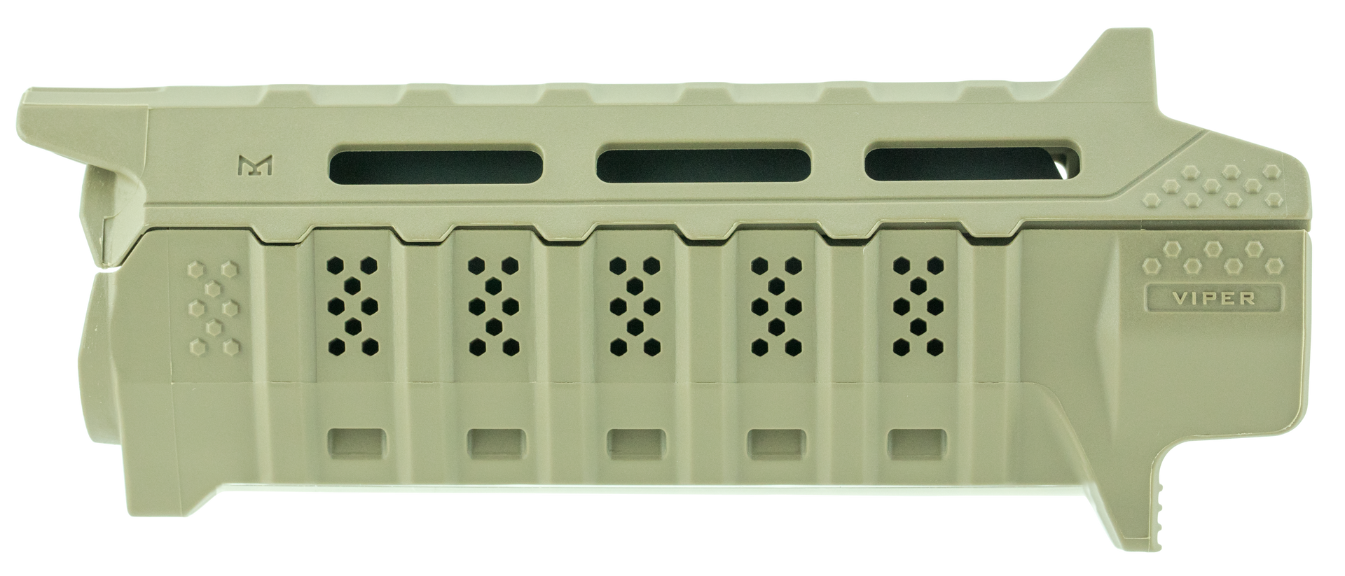 Strike industries carbine length handguard is a great upgrade to those looking for a solid, slim bottom drop-in handguard with aggressive styling.The handguard, made of impact resistant nylon fiber-reinforced injection-molded polymer, features aggressive gripping options, top and bottom hand stops and the m-lok rail system with plenty of real estate to mount your accessories.