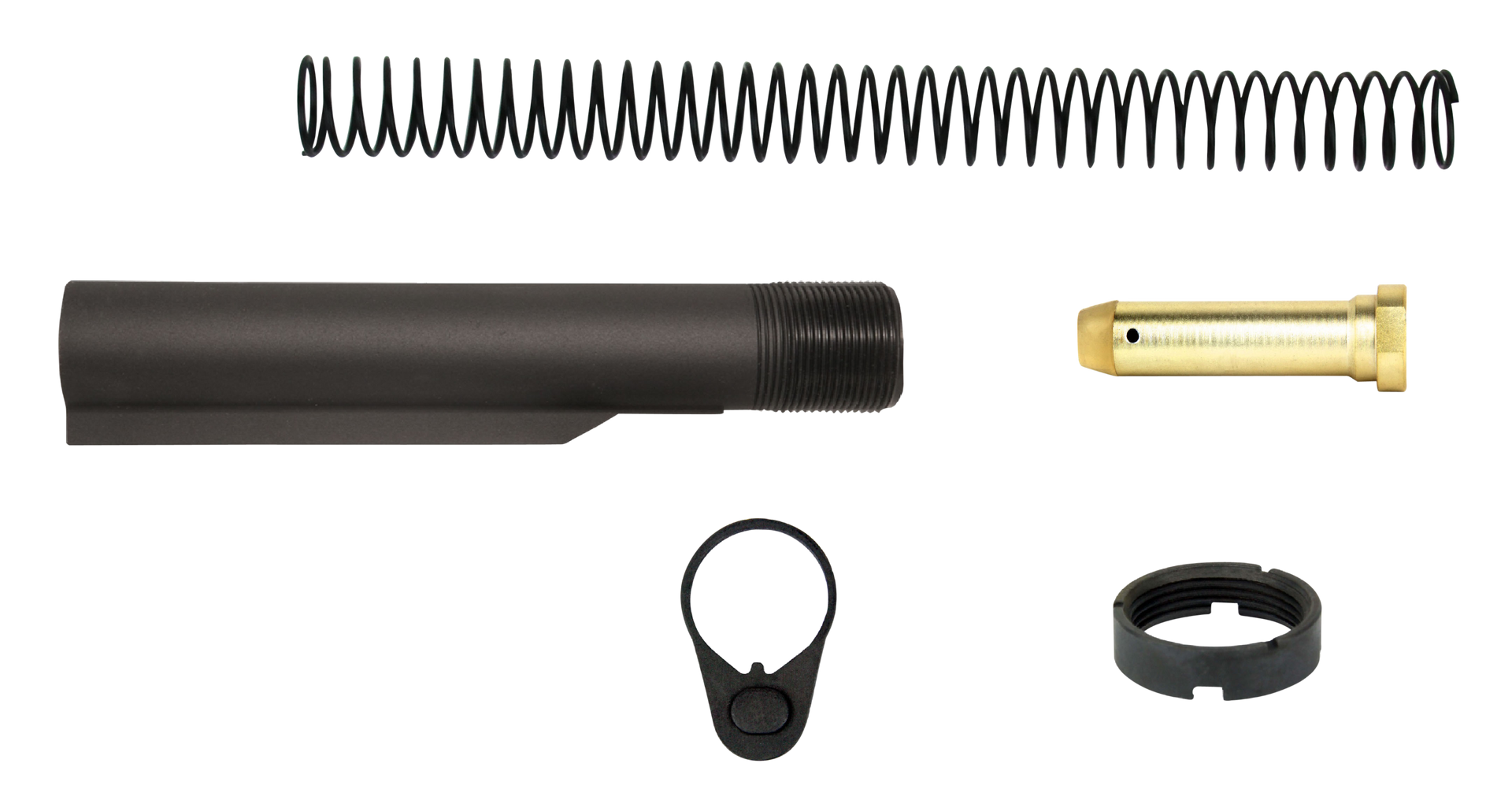 This kit includes (1) mil-spec pistol buffer tube w/foam insert, (1) 3 oz.Buffer, (1) carbine length buffer spring, (1) regular end plate and (1) castle nut.Type: Buffer AssemblyFirearm Type: AR PlatformMaterial: Mil-SpecView more