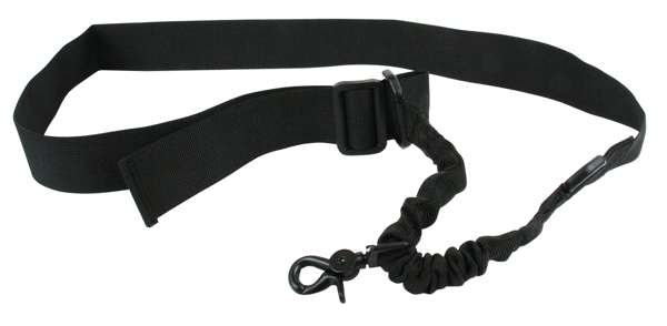 Tacfire's single point double bungee sling is ideal for close body carry and easy weapon handling.It is constructed of a high density nylon webbing with a steel clip and can hold up to 150 lbs.The sling is also adjustable 20" to 30".This model has a black finish.