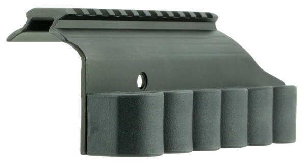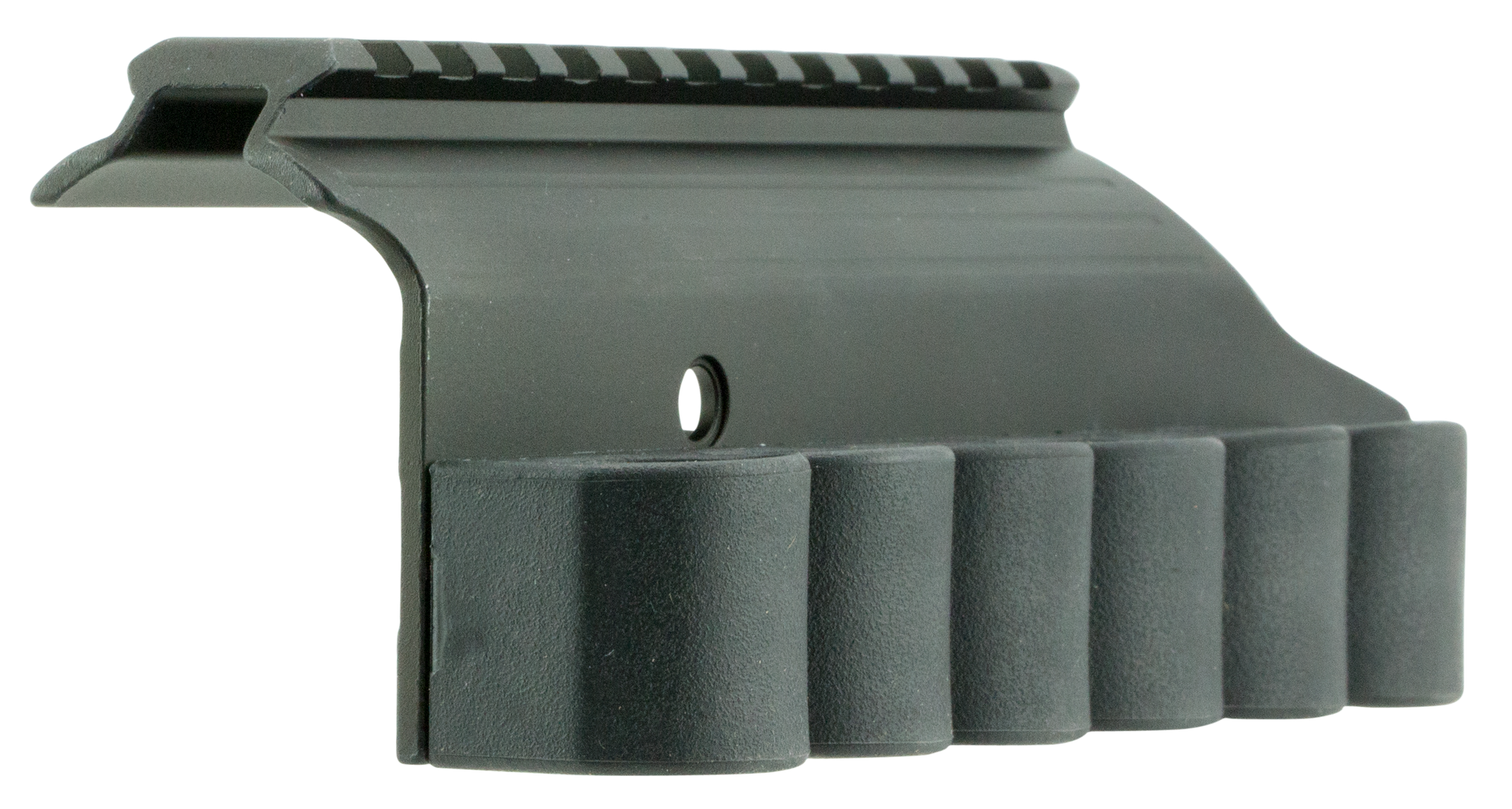 Tacstar's shotgun rail mount with sidesaddle is ultra-rigid, lightweight and straddles both sides of the receiver.It is constructed of aluminum with a non-glare anodized finish.The top picatinny rail can mount a variety of accessories, yet is designed to sit just high enough to allow continued use of the shotgun's bead sight.Keeping six shells in readiness, the low profile design sidesaddle incorporates tacstar's proprietary material for durability and secure shell retention.This model is compatible with mossberg 930.This model fits 12 gauge mossberg 500 and 590 models.