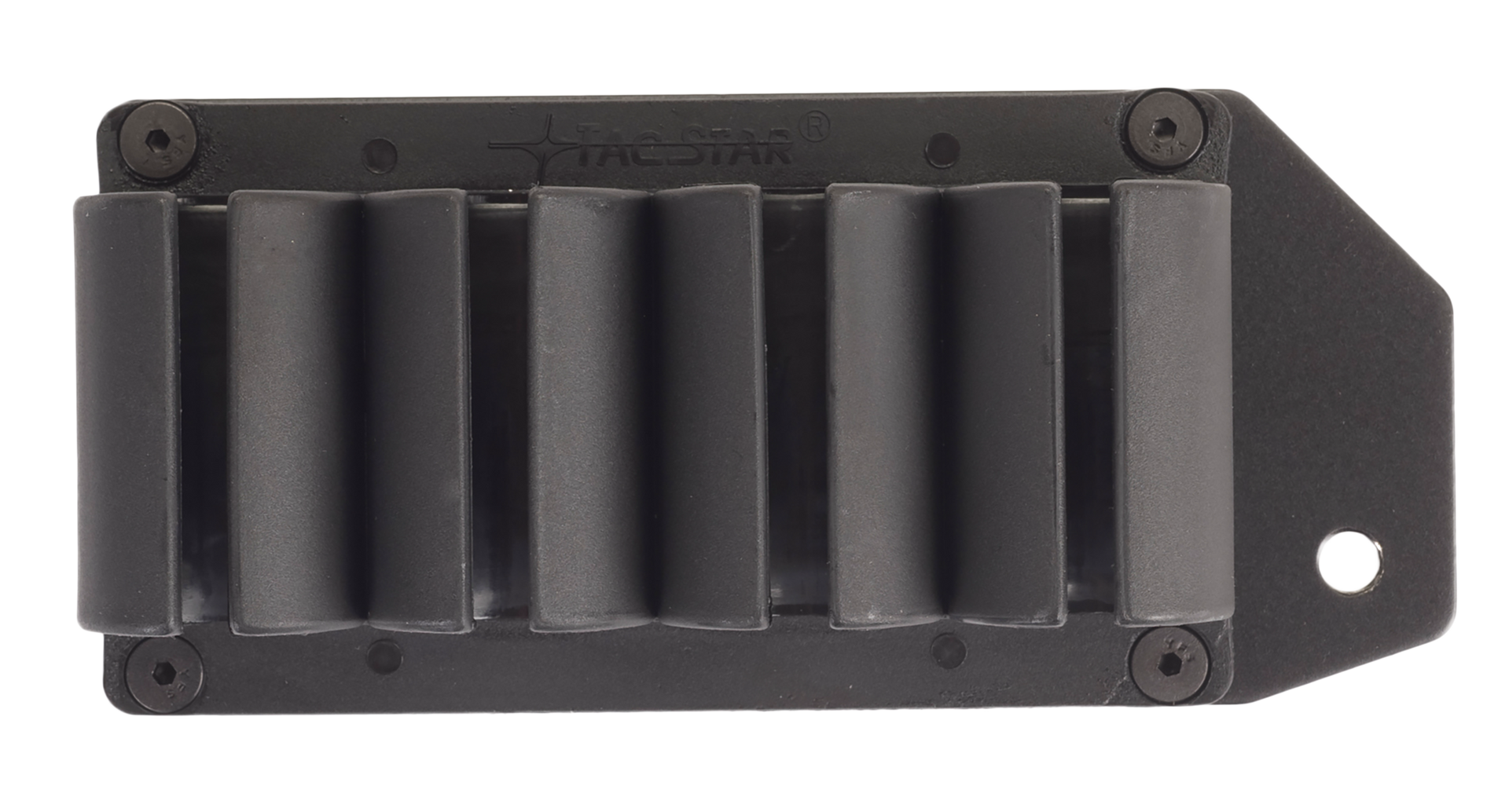 Tacstar's sidesaddle mounts extra rounds on your shotgun in a convenient and accessible location for fast reloading.The polymer shell carrier is attached to an aluminum mounting plate that installs directly on the shotgun receiver, and is designed to provide clearance for long forends.All mounting screws are included, no gunsmithing required.