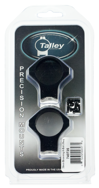 These browning x-bolt scope mounts made by talley manufacturing offer a unique and simplified one-piece scope ring and base solution for browning x-bolt rifles.Mounts to receiver with 6-48 length screws.This simplified mounting system eliminates the possibility of an out of alignment interface or loose connection between the ring and base of traditional two-piece designs.Ultimately this provides more strength and durability than rival steel rings and bases, but with a lighter overall weight.Fully cnc machined from lightweight aircraft-grade aluminum to the industries tightest tolerances, this rigid scope mounting platform requires no lapping and is ready to go out of the box.