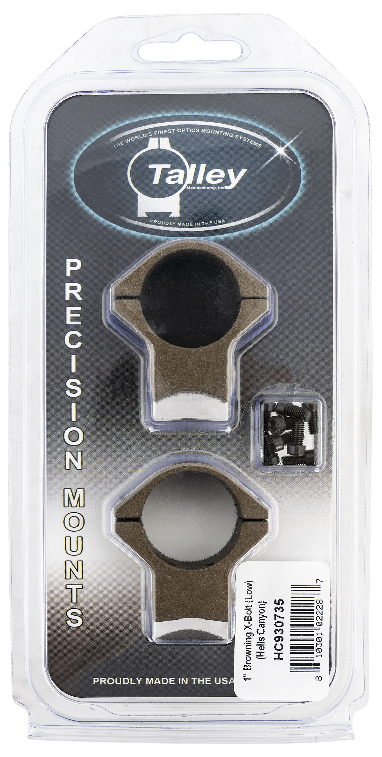 Made in america, these browning x-bolt scope mounts made by talley manufacturing offer a unique and simplified one-piece scope ring and base solution for browning x-bolt rifles.This simplified mounting system eliminates the possibility of an out of alignment interface or loose connection between the ring and base of traditional two-piece designs.Ultimately this provides more strength and durability than rival steel rings and bases, but with a lighter overall weight.Fully cnc machined from lightweight aircraft-grade aluminum to the industries tightest tolerances, this rigid scope mounting platform requires no lapping and is ready to go out of the box.